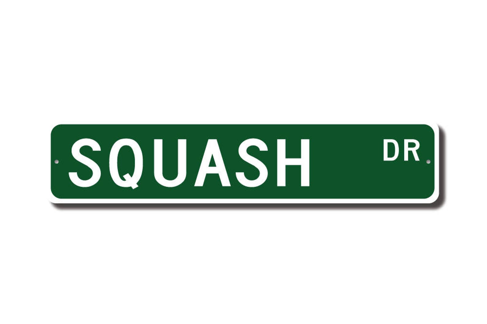 Squash lovers check out this awesome street sign! This will make the perfect piece for any Squash fan, or maybe you are a Squash lover looking for a cool decor piece ! Made of premium aluminum it will stand the test of time. This sign will look great in any room, home den, cave, or office ! Get this sign for your favorite Squash aficionado !