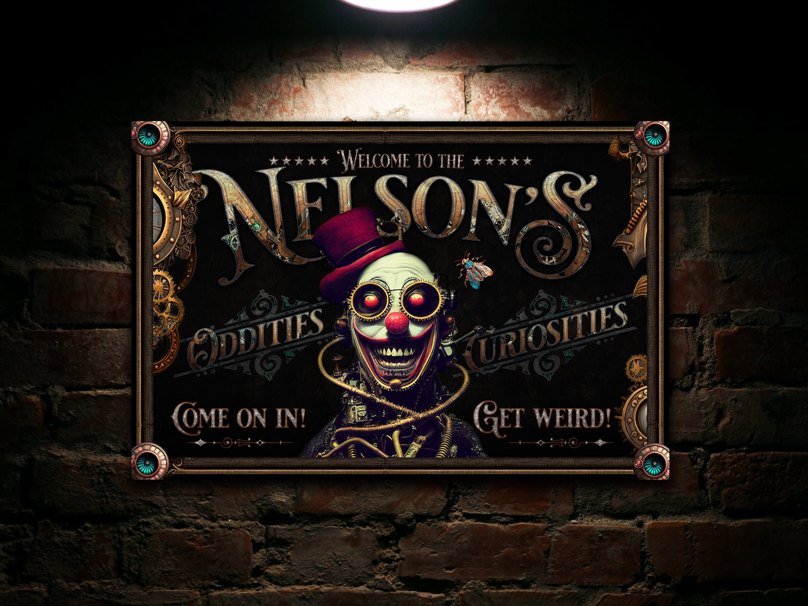 This Steampunk Last Name Sign makes a great gift for that special person or even yourself. Display this vintage steampunk sign anywhere in your home. It adds humor to any wall.