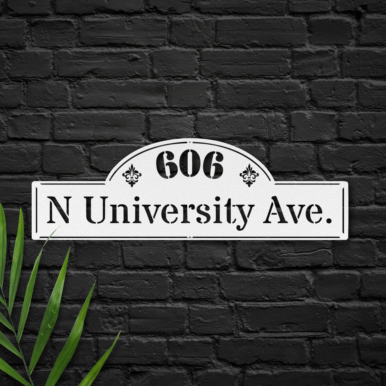 Elevate your home9;s curb appeal with our Metal Address Sign featuring charming Fleur-de-Lis accents. This stylish and durable sign beautifully showcases your address while adding a touch of timeless elegance to your exterior dcor. Make a statement with this classic design, marrying form and function seamlessly.