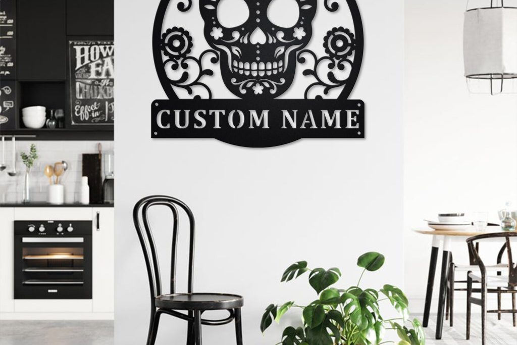 Be the first to review “Custom Sugar Skull Metal Wall Art with LED Light, Personalized Name Sign”