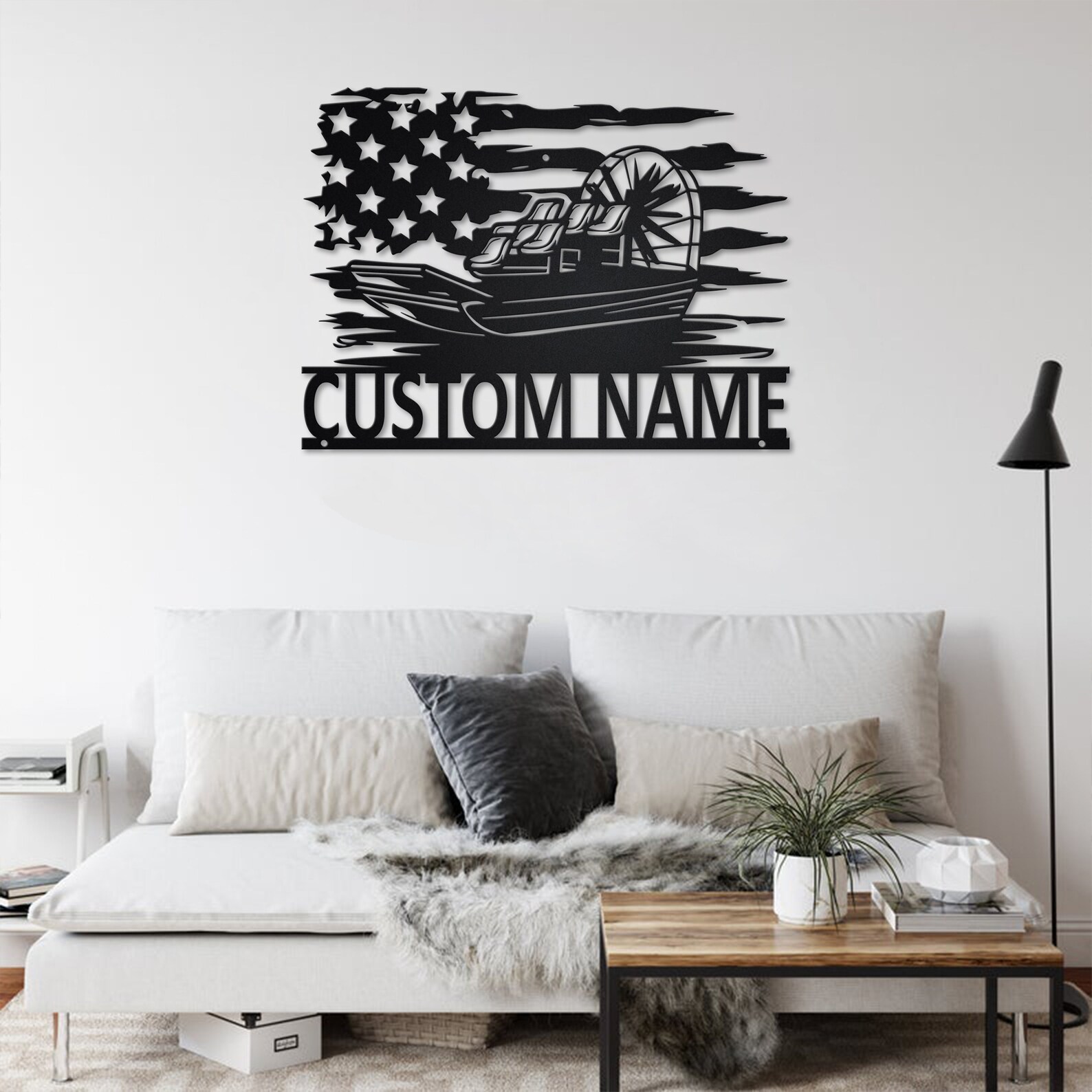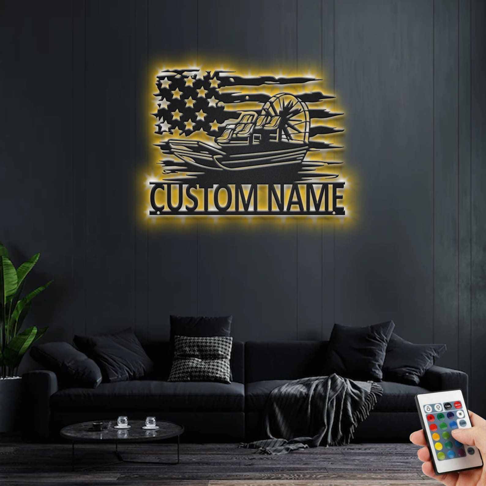 Custom US Airboat Metal Art with LED Light