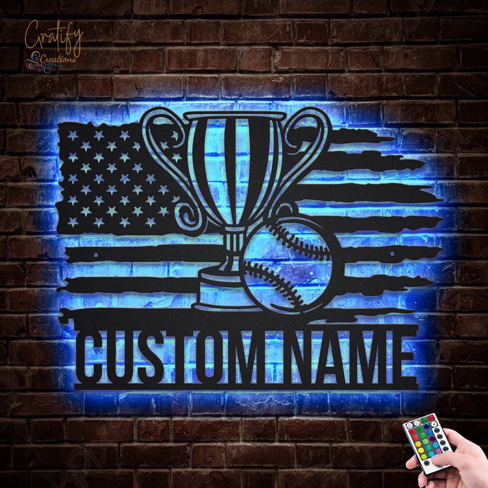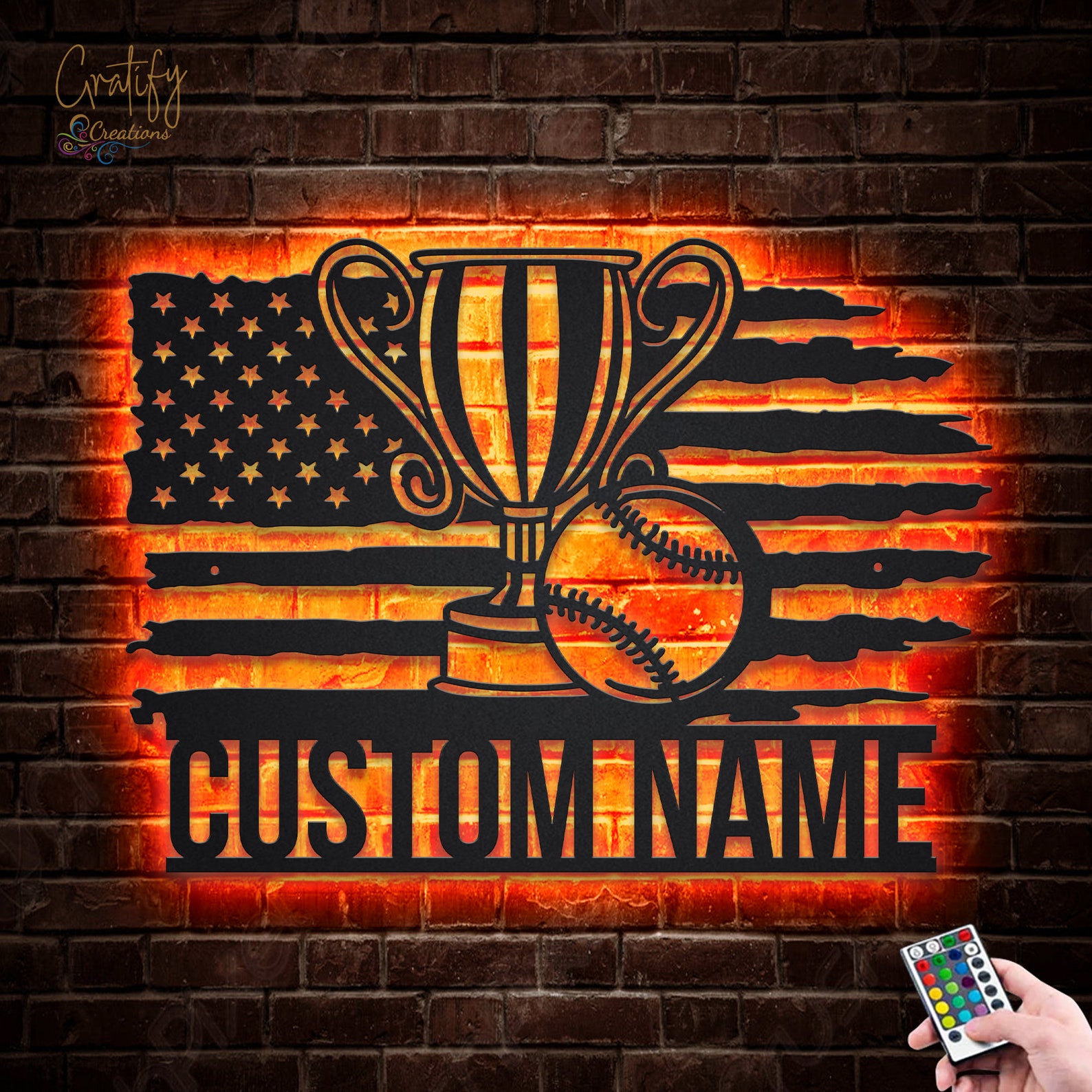 Be the first to review “Custom US Baseball Metal Art with LED Lights V4”
