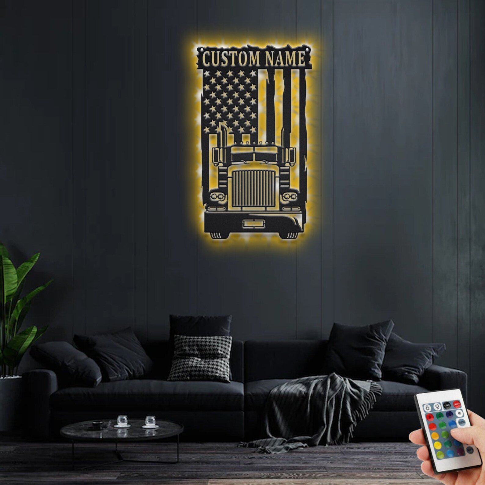 Be the first to review “Custom US Big Truck Metal Art with LED Light”
