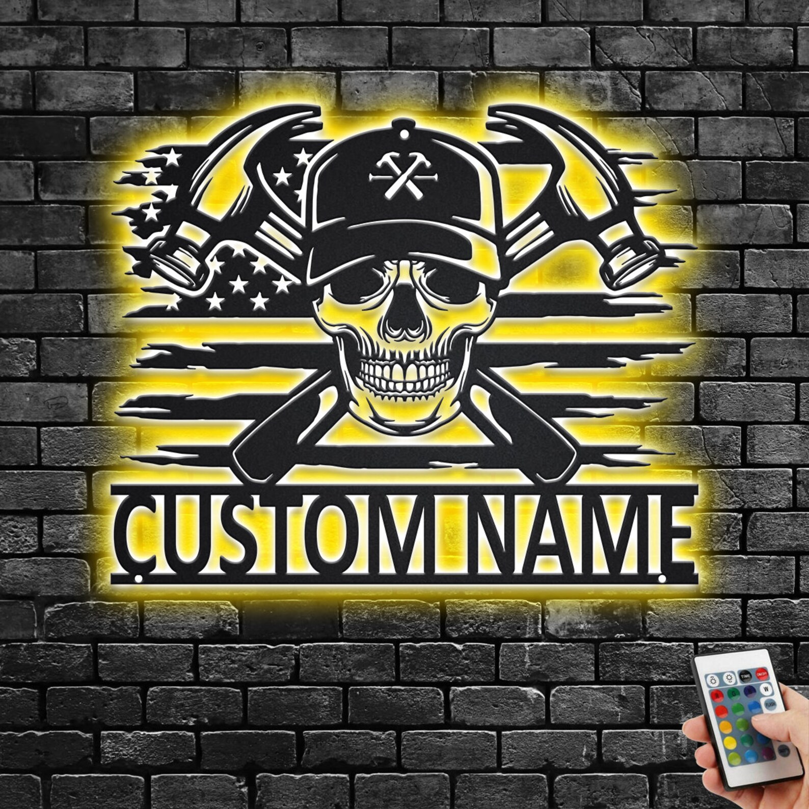 Custom US Carpenter Skull Metal Sign with LED – Room Decor