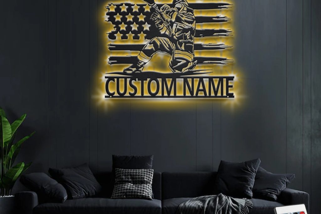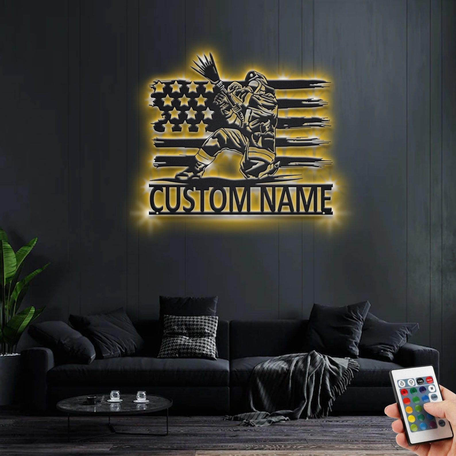Custom US Fire Fighter Metal Sign with LED – Room Decor