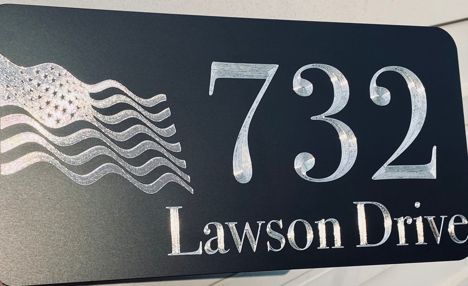 Be the first to review “Custom US Flag Engraved Metal Address Sign, 12×6”