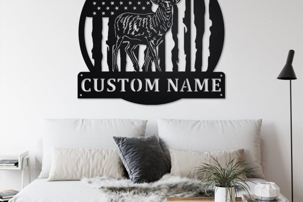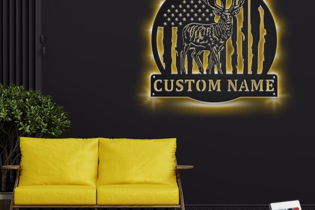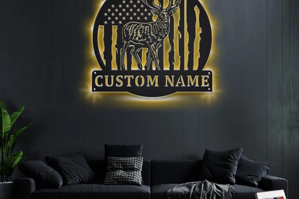 Custom US Flag Reindeer Metal Sign with LED – Room Decoration