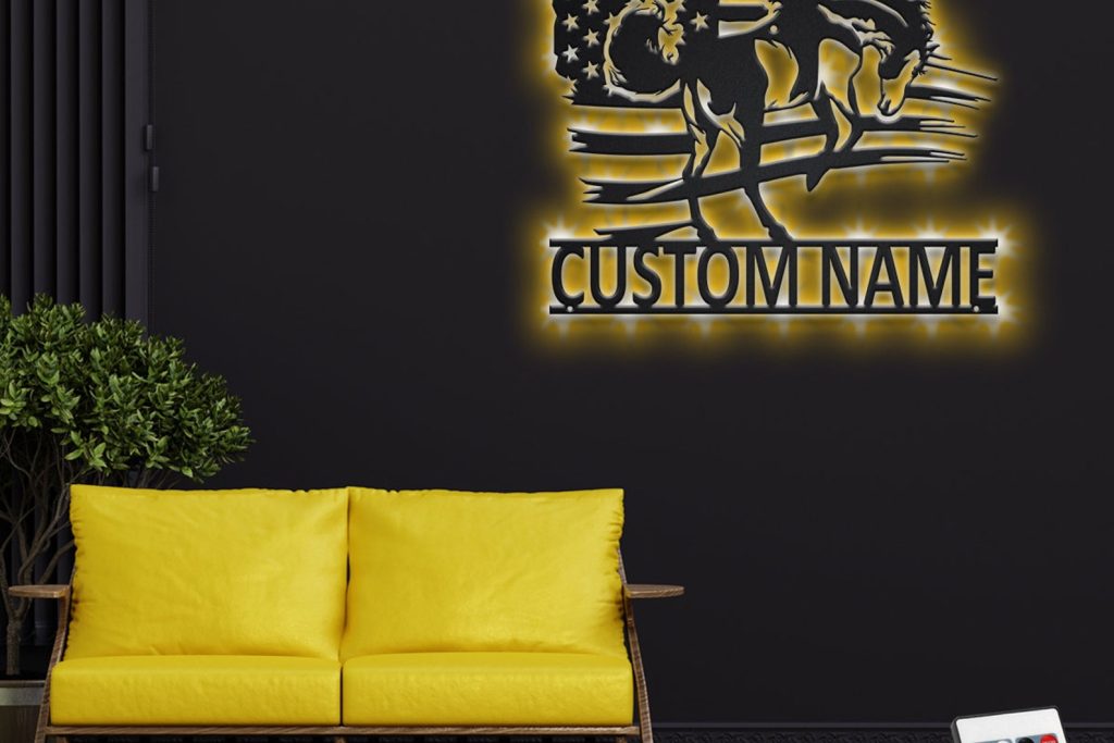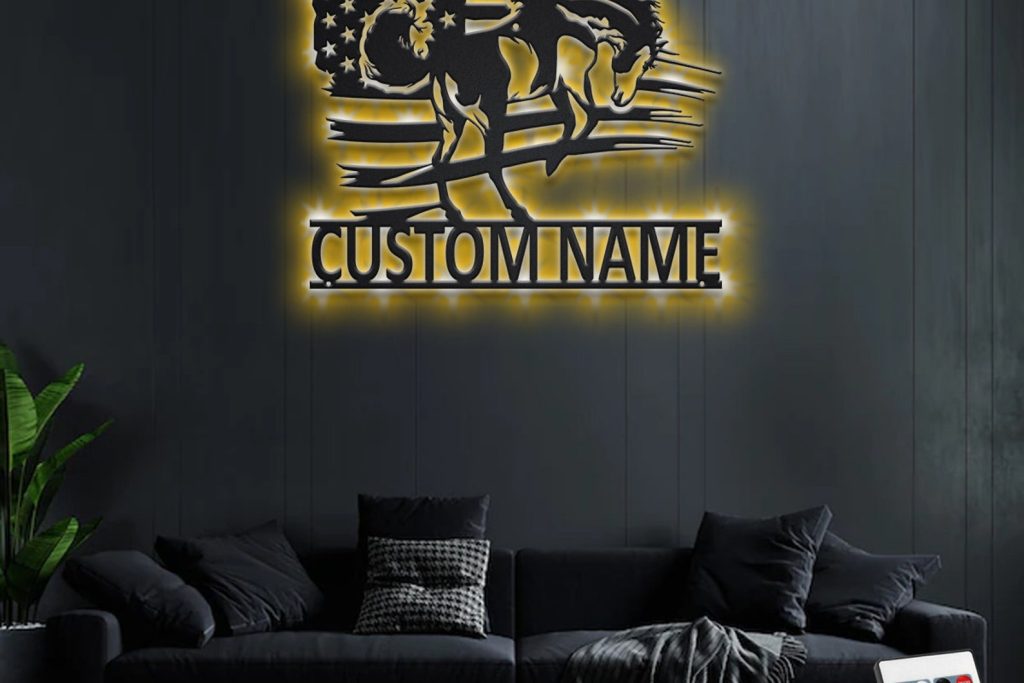 Be the first to review “Custom US Horse Metal Sign with LED – Personalized Decor”