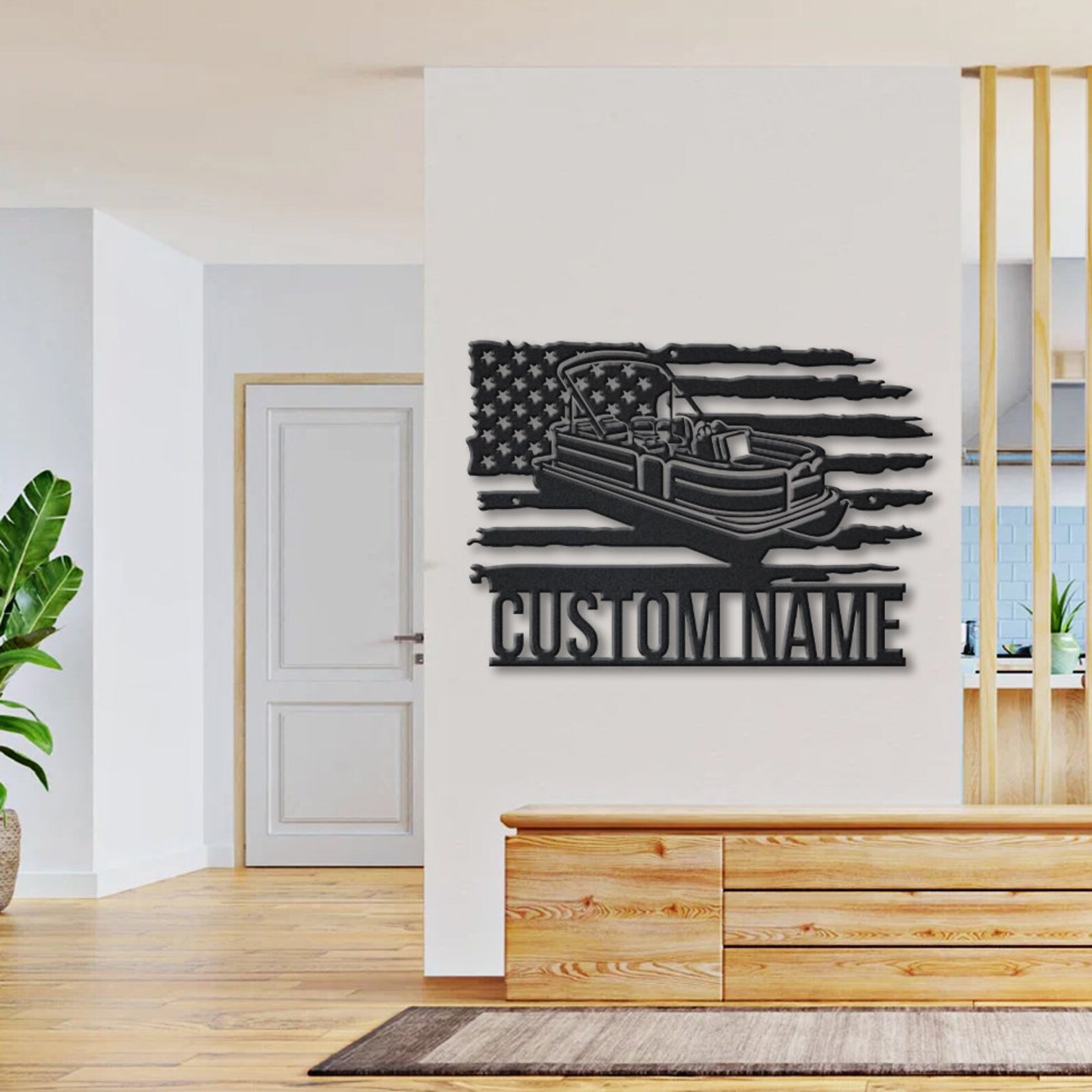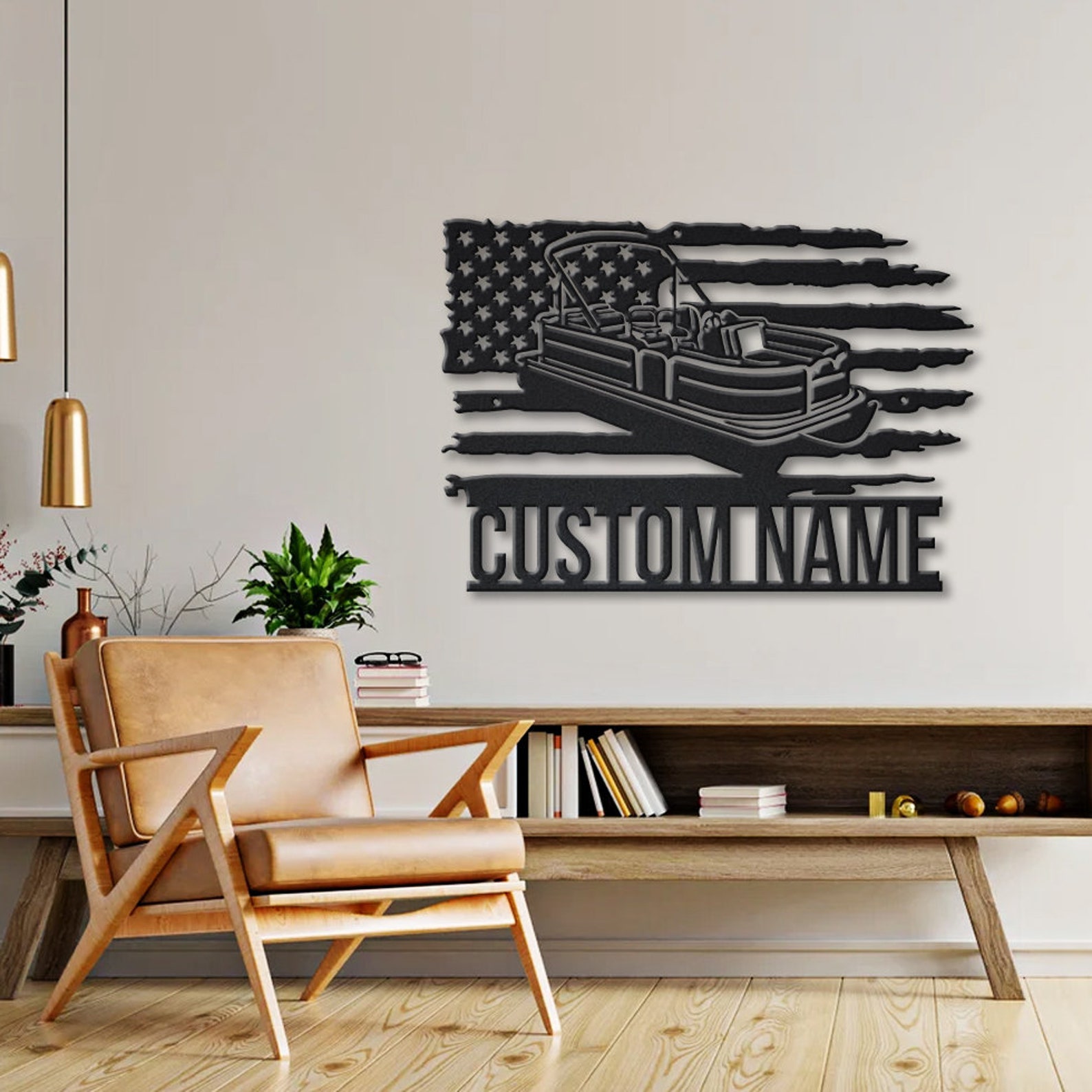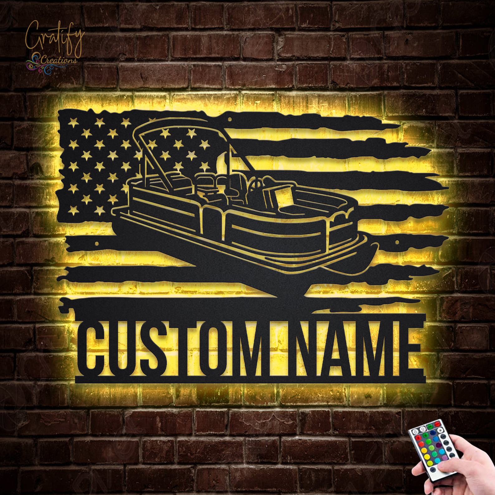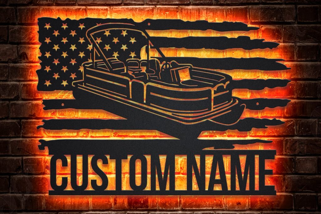 Custom US Pontoon Boat Metal Sign with LED