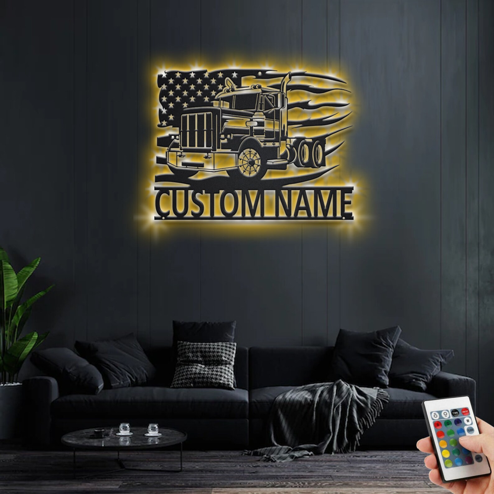 Custom US Semi Truck Metal Sign with LED – Room Decoration
