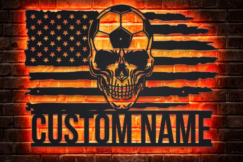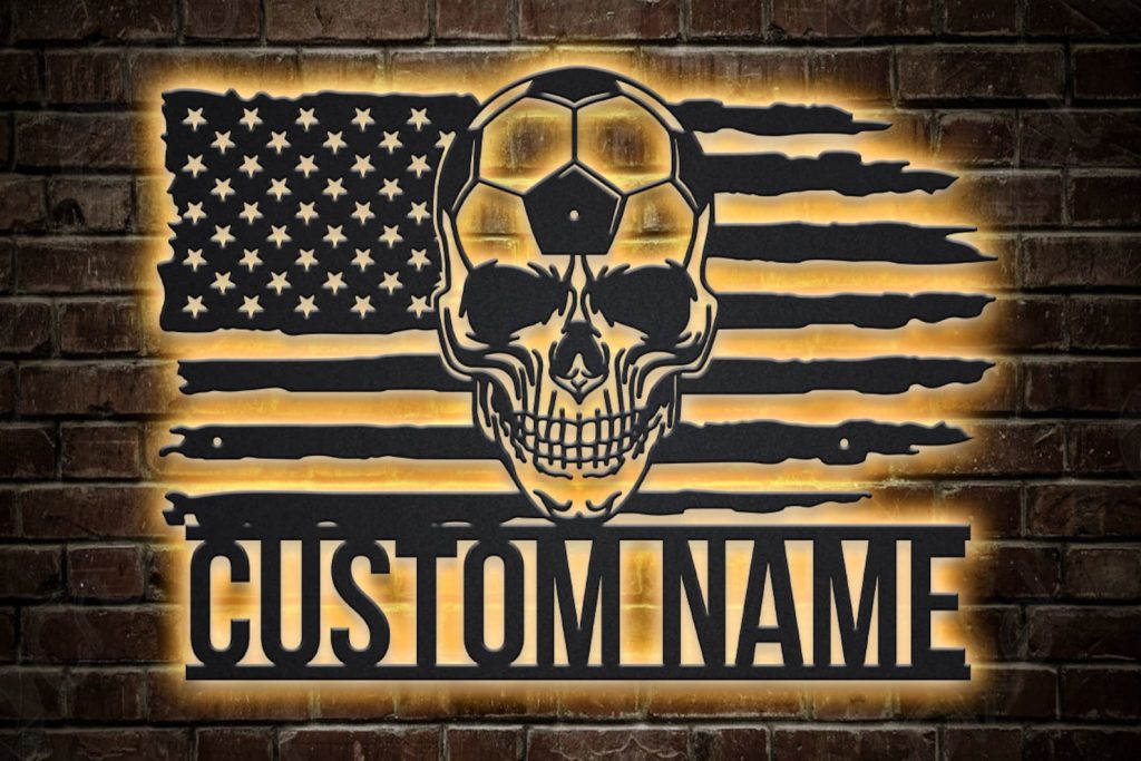 Be the first to review “Custom US Soccer Skull Metal Sign with LED – Wall Decor”