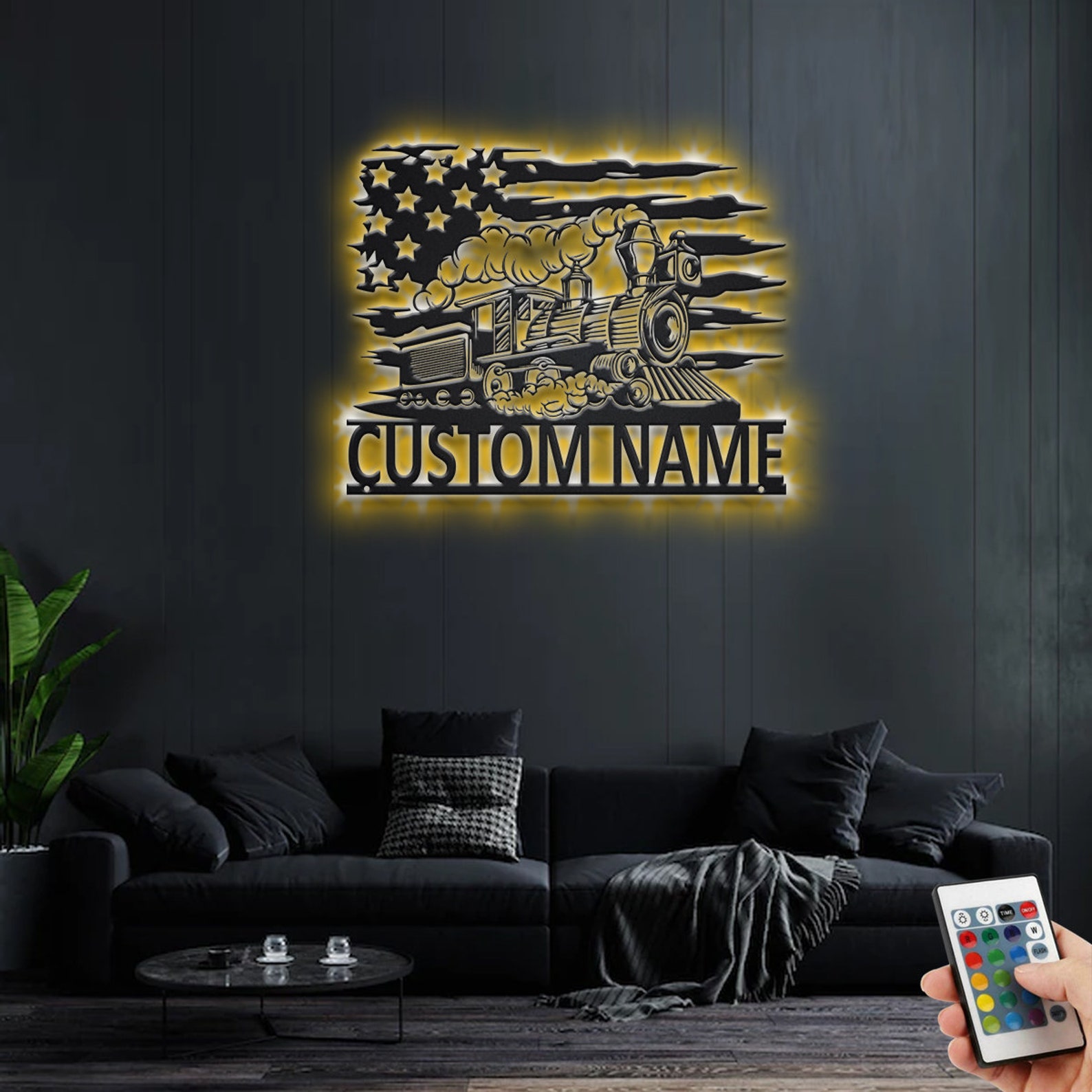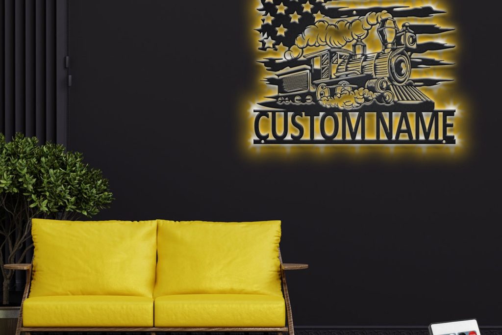 Custom US Train Metal Sign with LED – Room Decoration