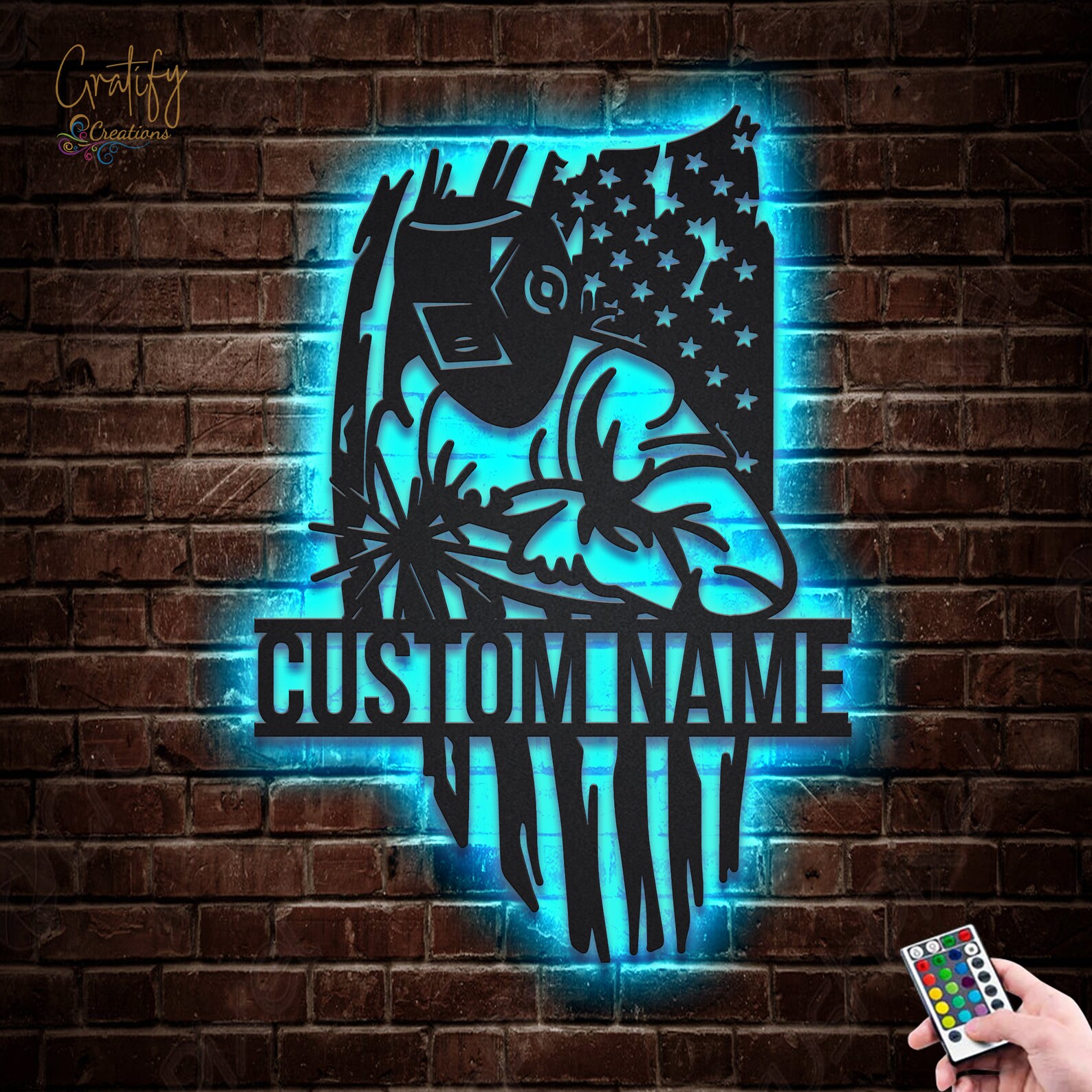 Be the first to review “Custom US Welder Metal Sign with LED V3 – Neon Wall Decor”