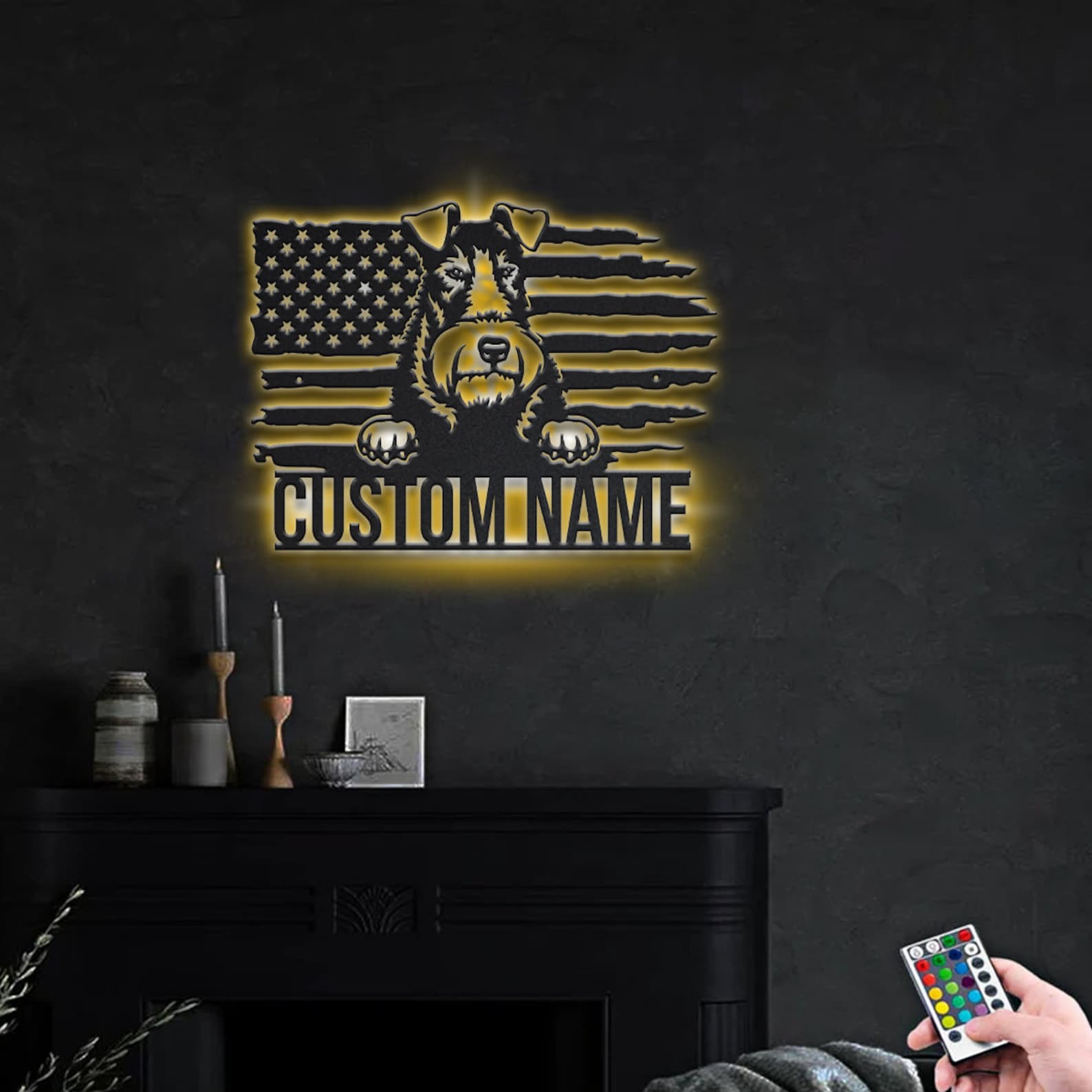 Custom US Wire Fox Terrier Metal Sign with LED – Home Decor