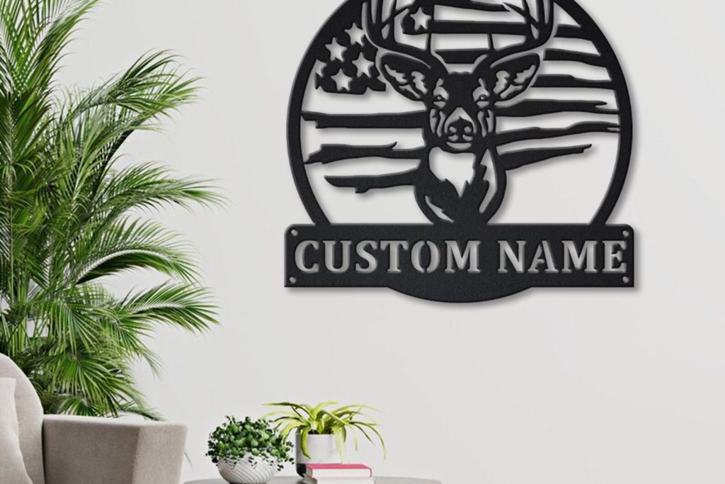 Be the first to review “Custom USA Flag Deer Hunting Sign – Personalized Deer Decor”