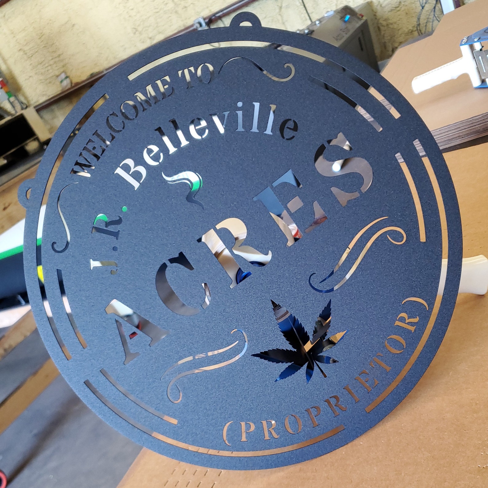 Made with 18 gauge steel and powder coated in your choice of 5 colors, this sign is built to withstand the elements for years of enjoyment. Add a touch of elegance to your home on the inside, outside, or both!