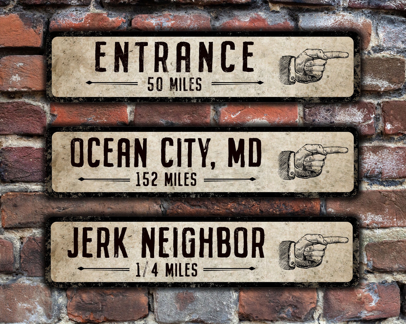 Let your imagination run wild with these super affordable vintage-style directional street signs. Have some fun by checking the distance to your favorite locations and posting them as a reminder of the great times you had or will have. Light weight and durable, these nifty signs are made to order in the USA. These custom metal signs will look perfect in any kitchen, home, bar, pub, bath, office, garage, and business. Our signs are made from .032 UV treated aluminum, which means they9;re built to last. Sublimation creates a super tough image that is fused into the surface of the metal making it almost impossible to scratch. You can install these signs anywhere indoors or outdoors though we do recommend not placing them in direct sunlight to avoid fading over time.