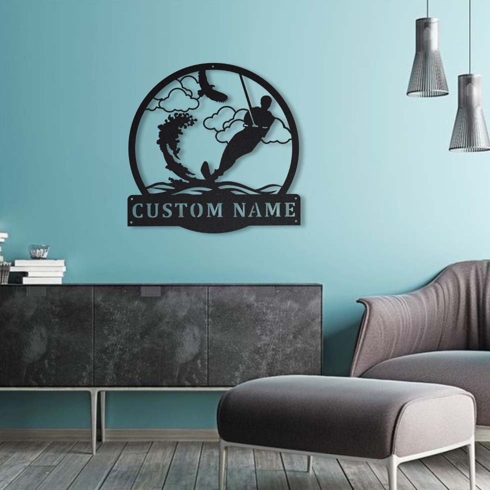 Custom Water Skiing Monogram Metal Sign – Personalized Decor