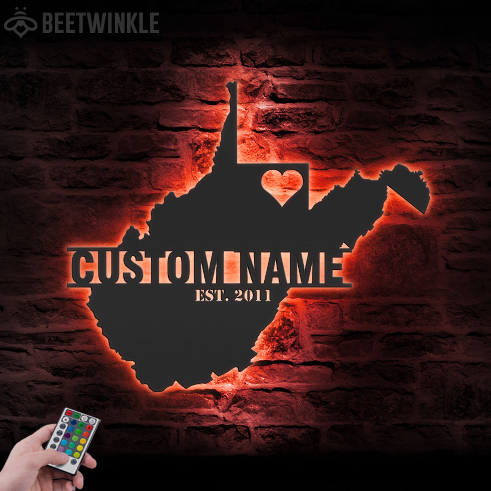 Be the first to review “Custom West Virginia State Metal Wall Art – LED Light, Personalized Map Sign”