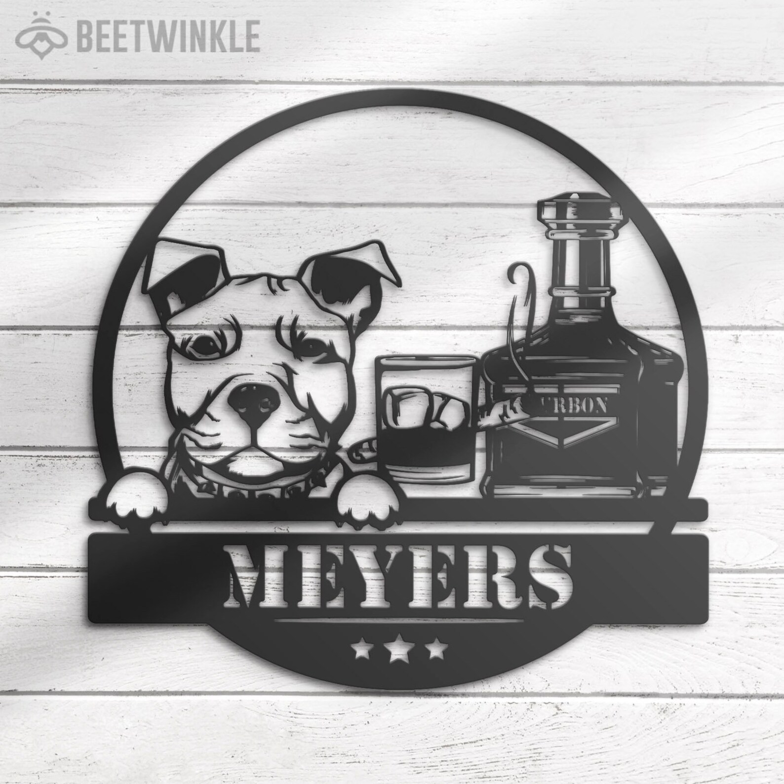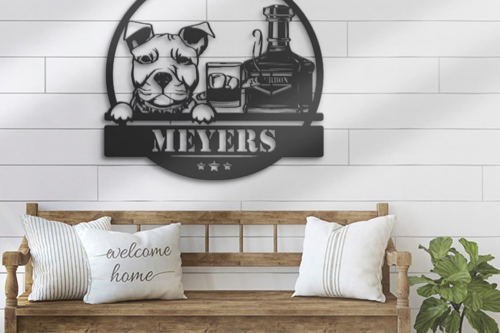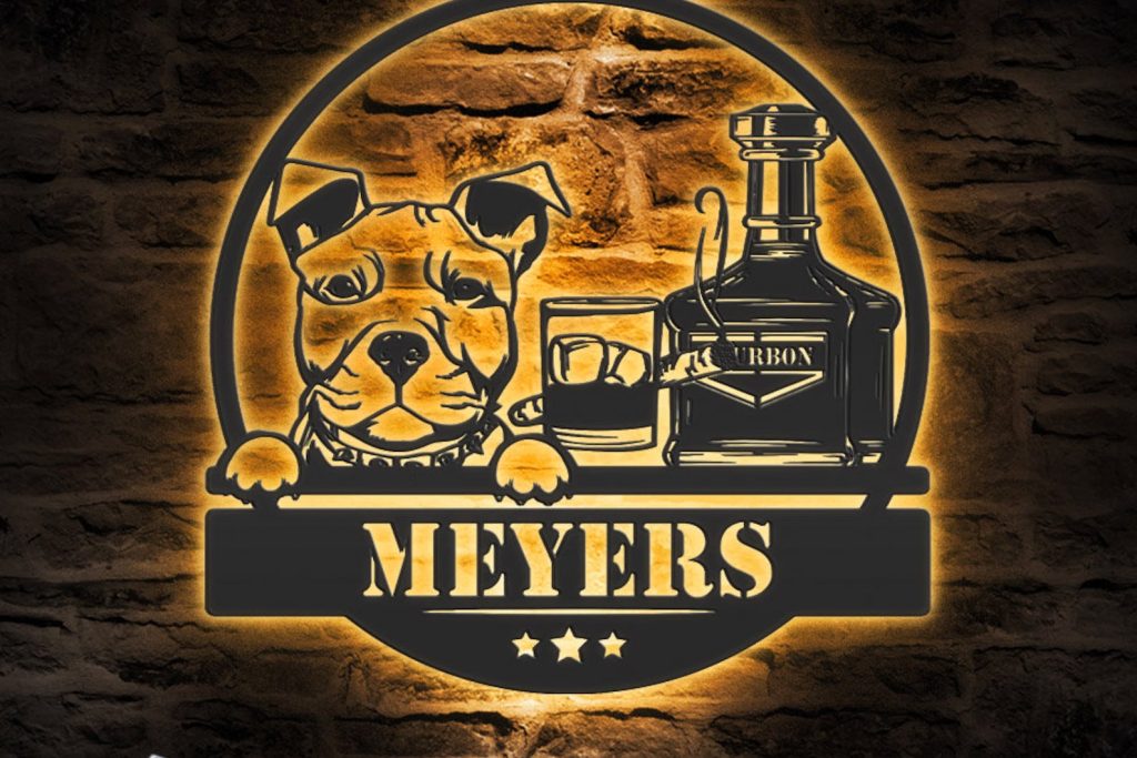 Be the first to review “Custom Whiskey Cigar and Pitbull Dog Metal Wall Art – LED Light, Personalized Sign”