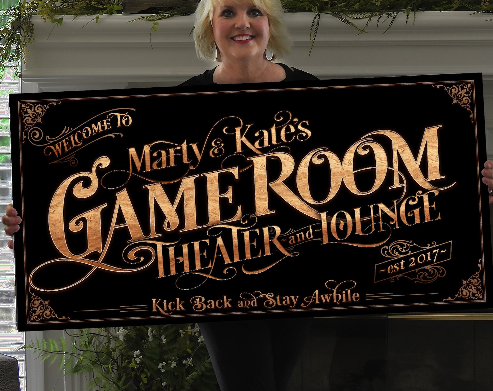 The sign is made with pre-designed holes for hanging. You can hang the sign everywhere easily with the screws already incl in the kit.