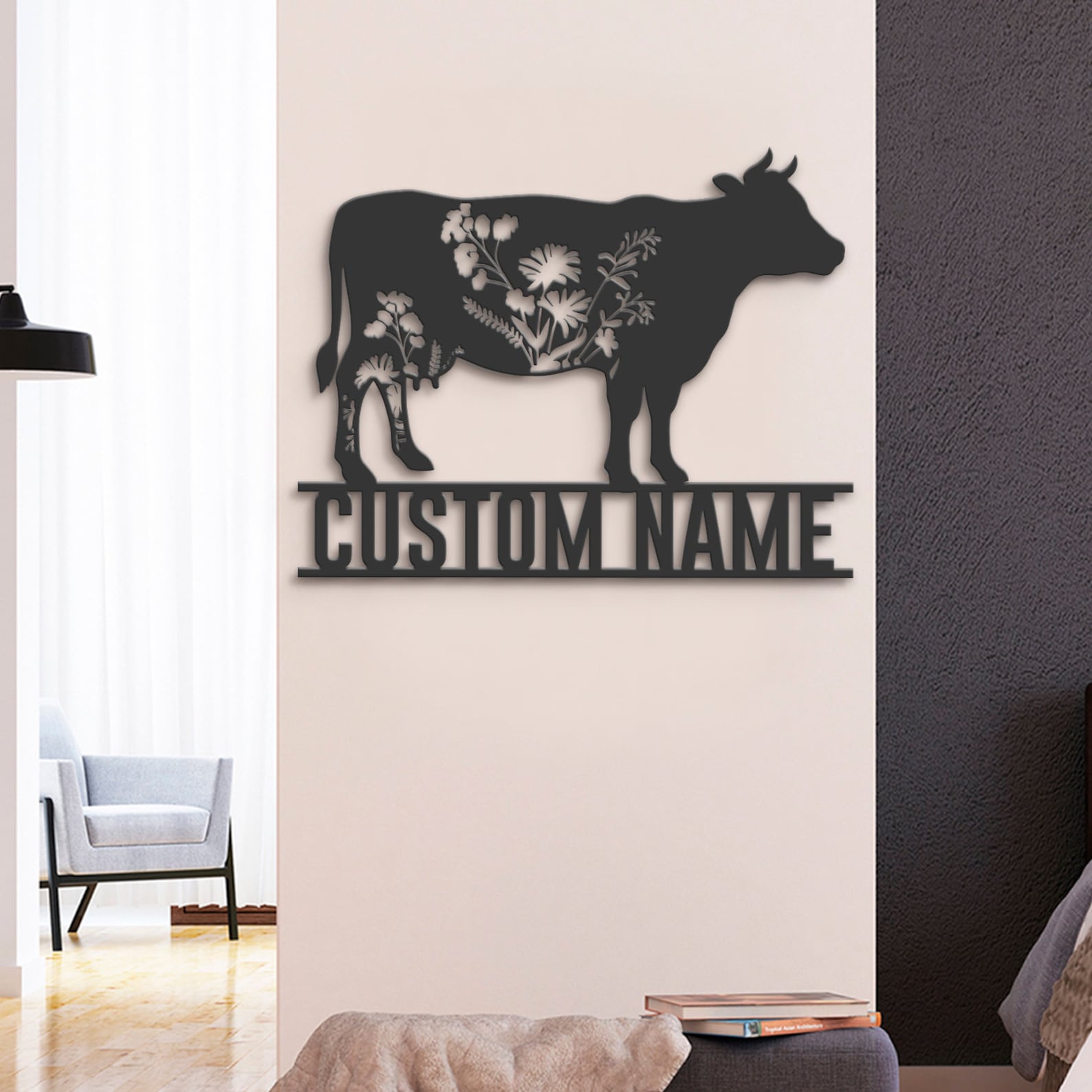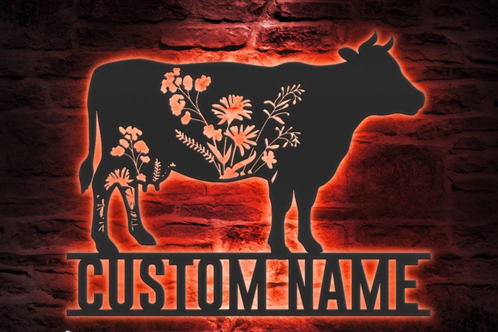 Be the first to review “Custom Wildflower Cow Metal Sign with LED – Farmhouse Decor”