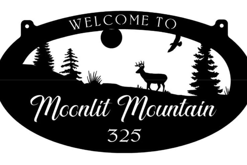 Rustic, personalized metal sign made of 14 gauge metal. Measures 48"". Powder coated black or beautiful rustic acid finish and clear coated . Makes a very attractive entrance sign.Incl with the price is customizing with your name.Our finish is a baked on powder coat for a very long lasting durable finish.