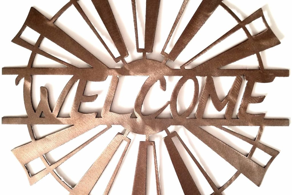 Metal Windmill plasma cut metal art. Choose the word "Welcome" or whatever other word or phrase you wish!