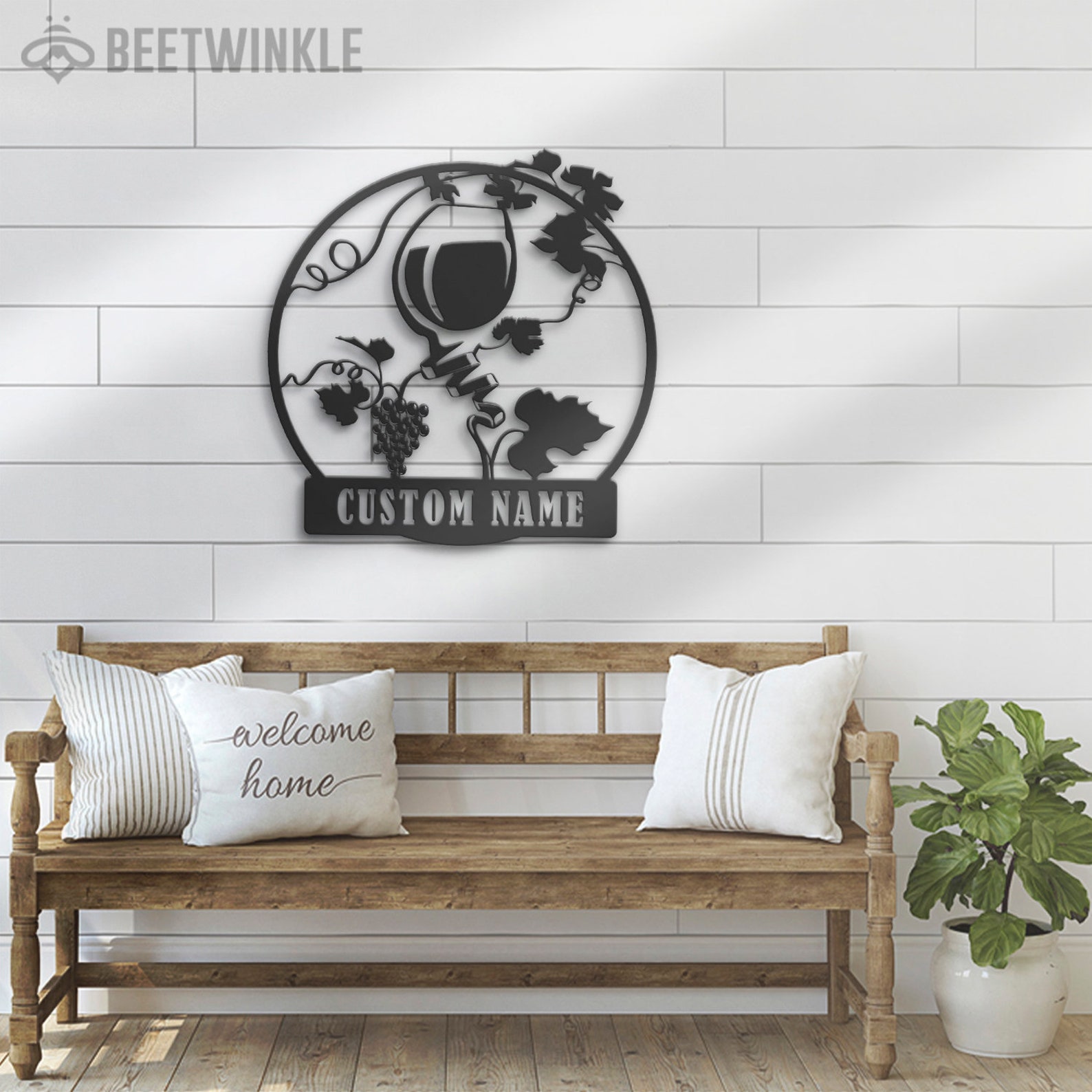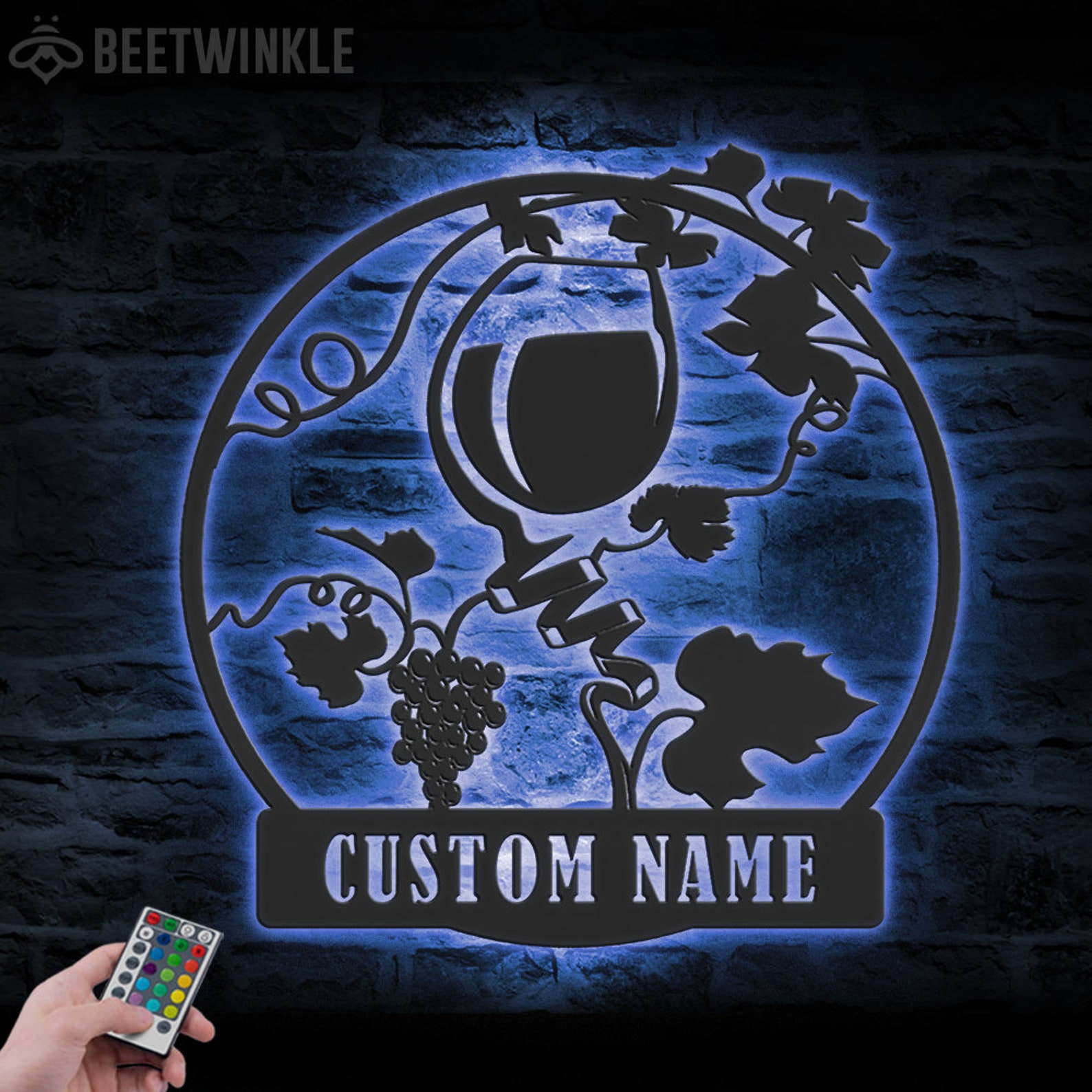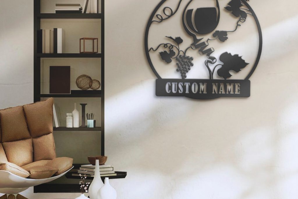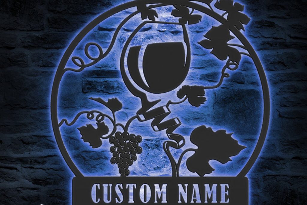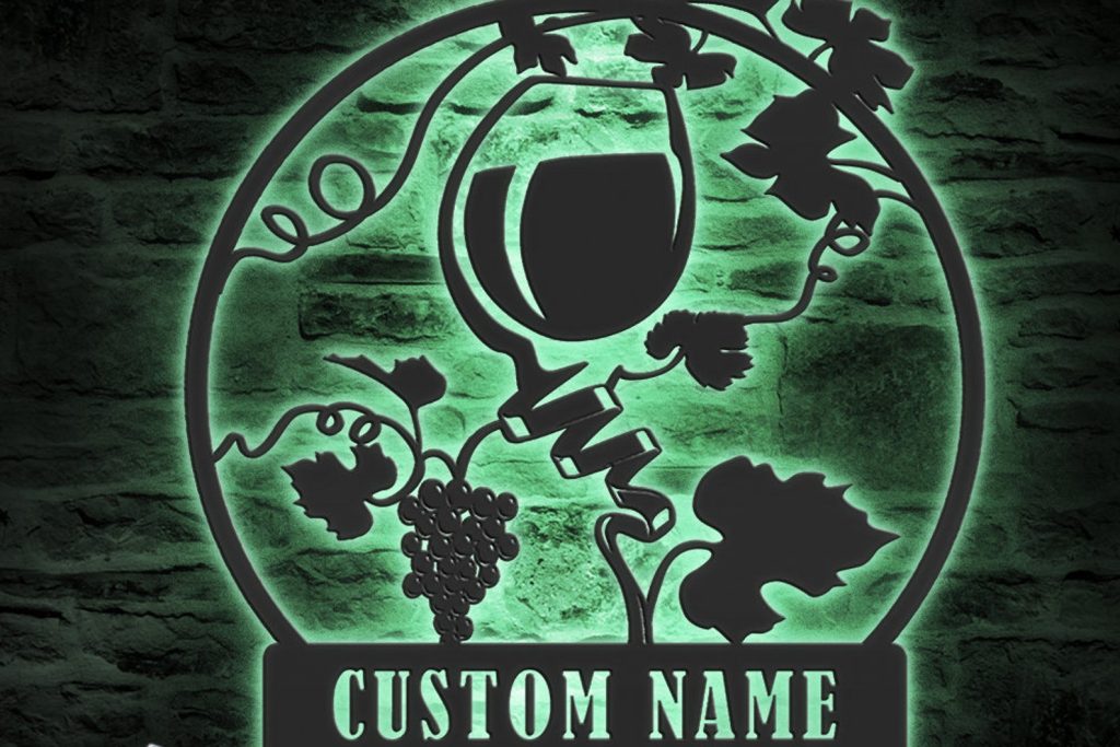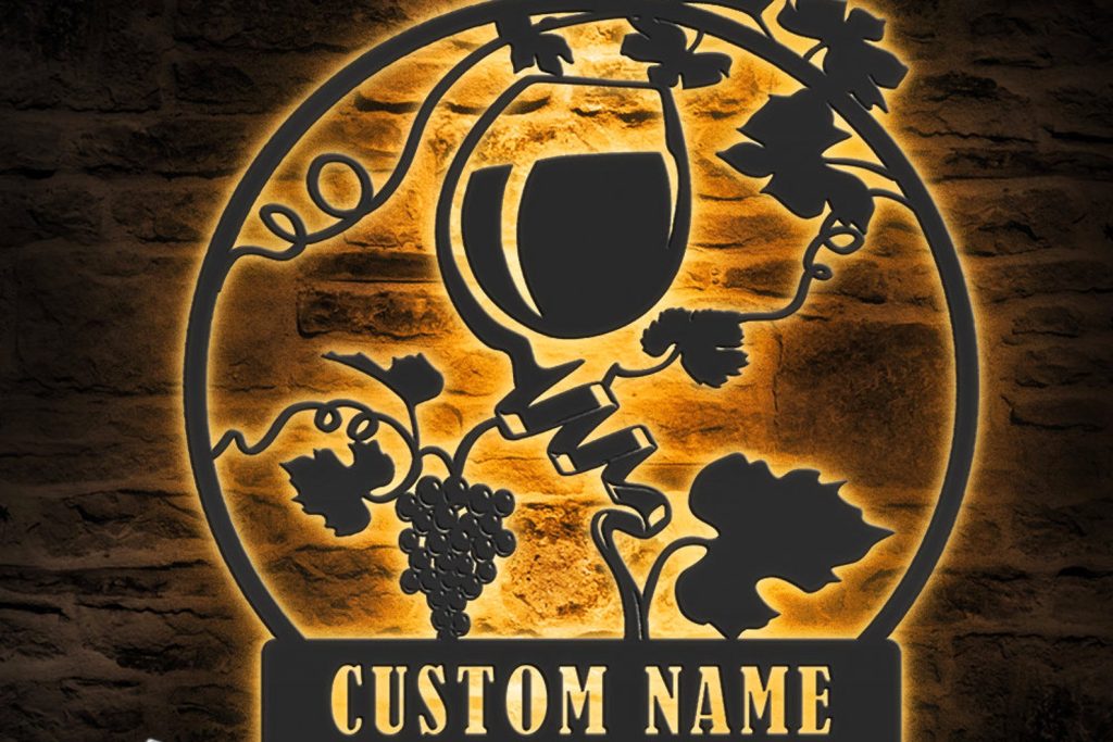 Custom Wine Bar Metal Wall Art – LED Light, Personalized Alcohol Drinking Name Sign
