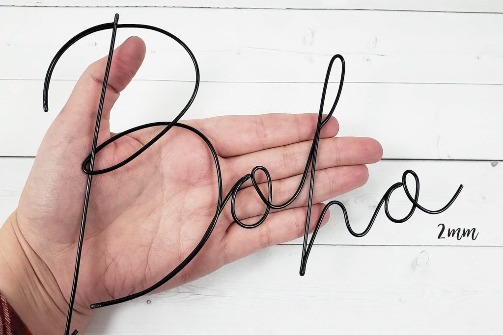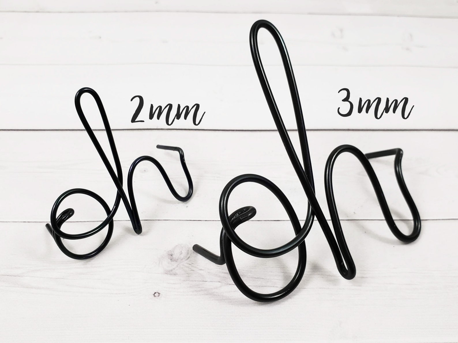 Choose your options from the drop down menu, including how many characters you need (3 character minimum). Enter your personalization or instructions to me in the personalization box, checking your spelling and punctiation, as well as how you plan to install or hang it, and add to cart. Please see images for color samples. 3mm wire currently only available in Black, Copper, Gold, Light Gold, Champagne and Silver, gold, copper and silver. Please message me for a custom order. 2mm size click here: /listing/753604989