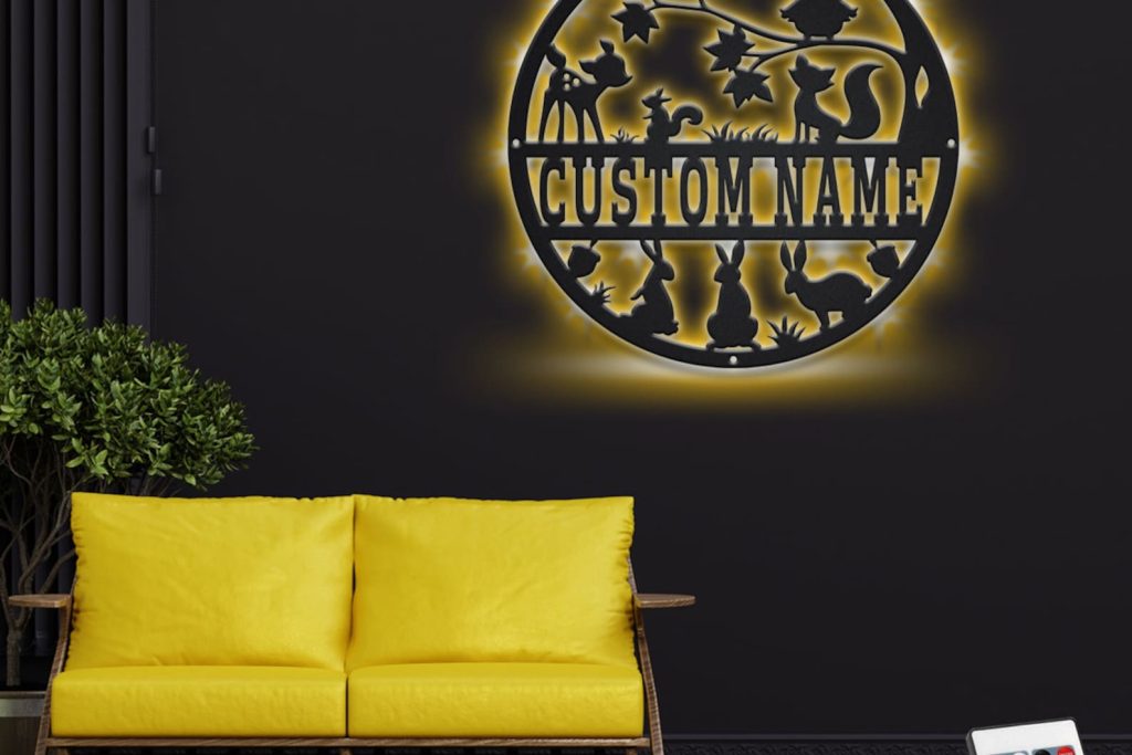 Be the first to review “Custom Woodland LED Metal Art – Personalized Name Sign Decor”