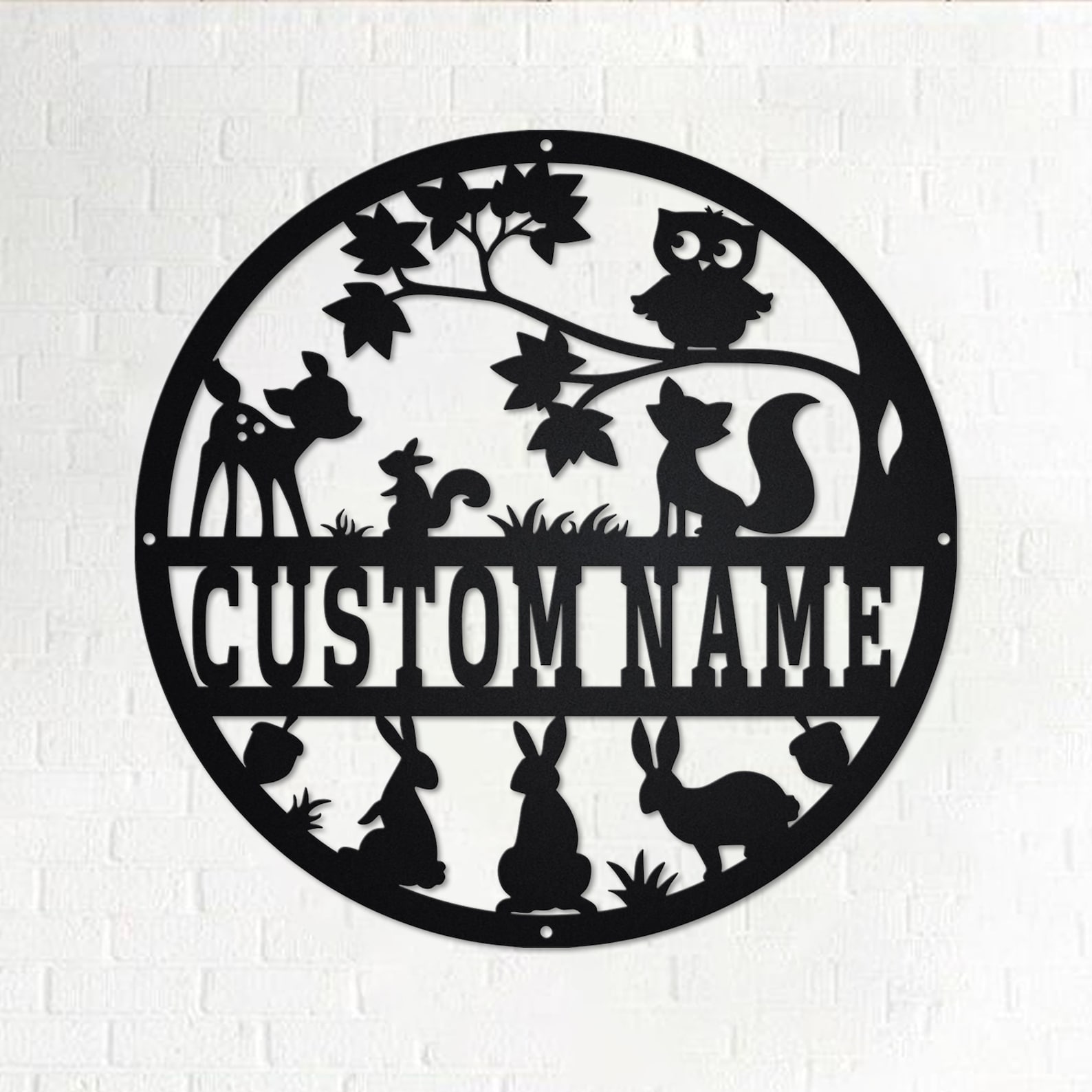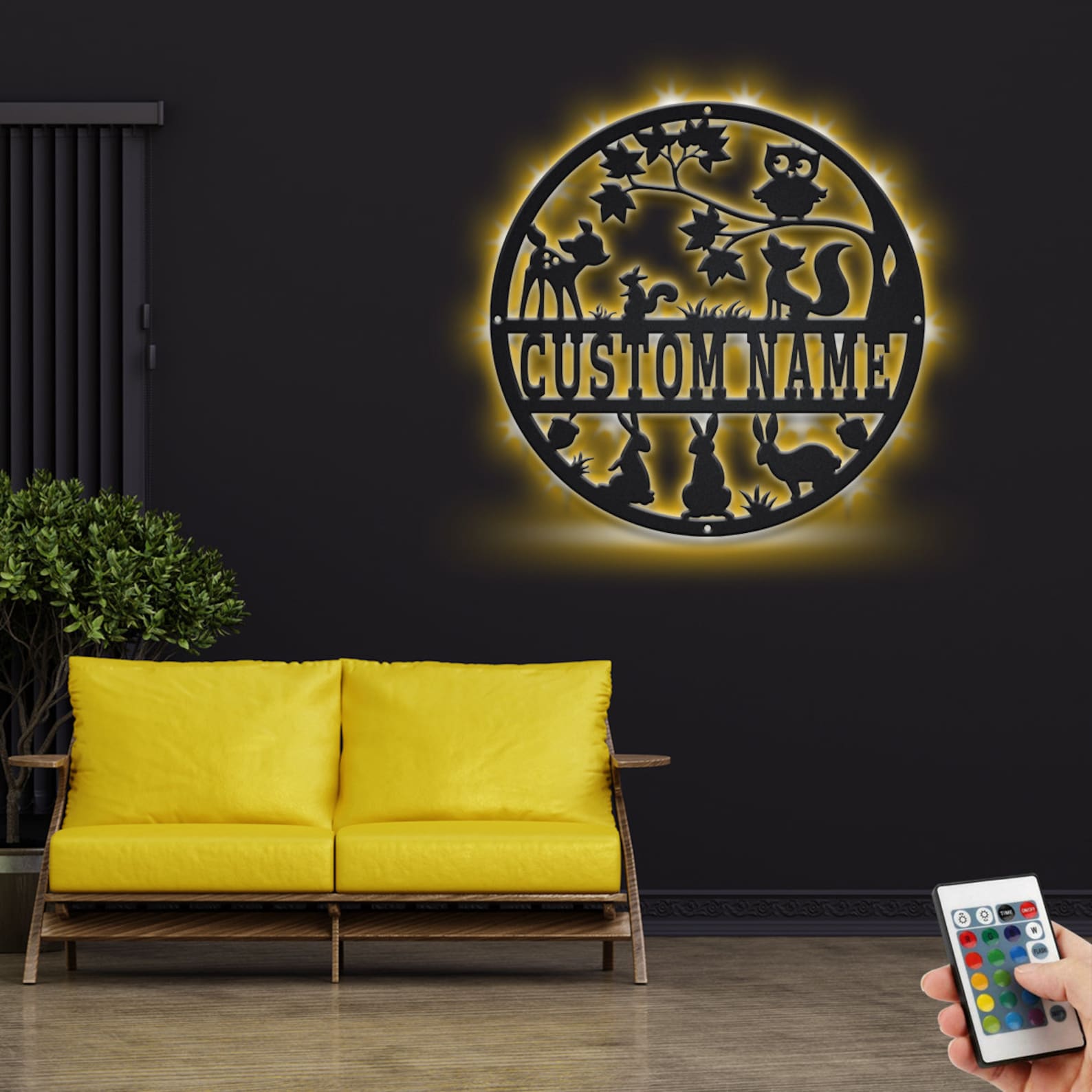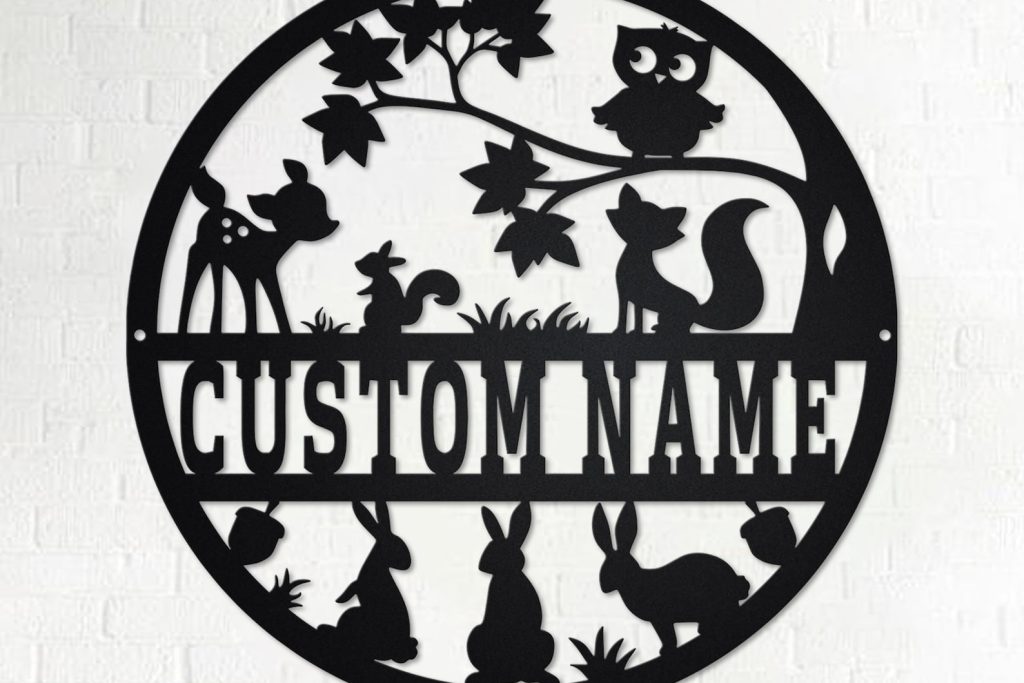 Custom Woodland LED Metal Art – Personalized Name Sign Decor