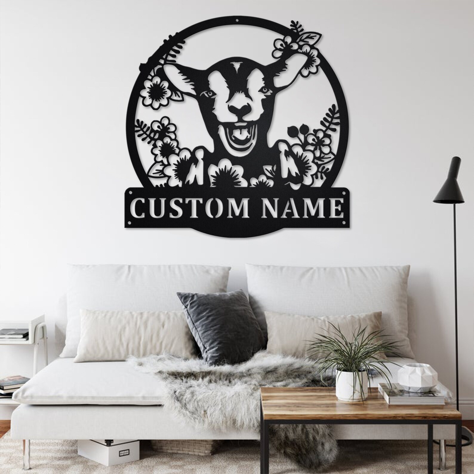 Be the first to review “Custom Wreath Farm Goat Metal Wall Art”