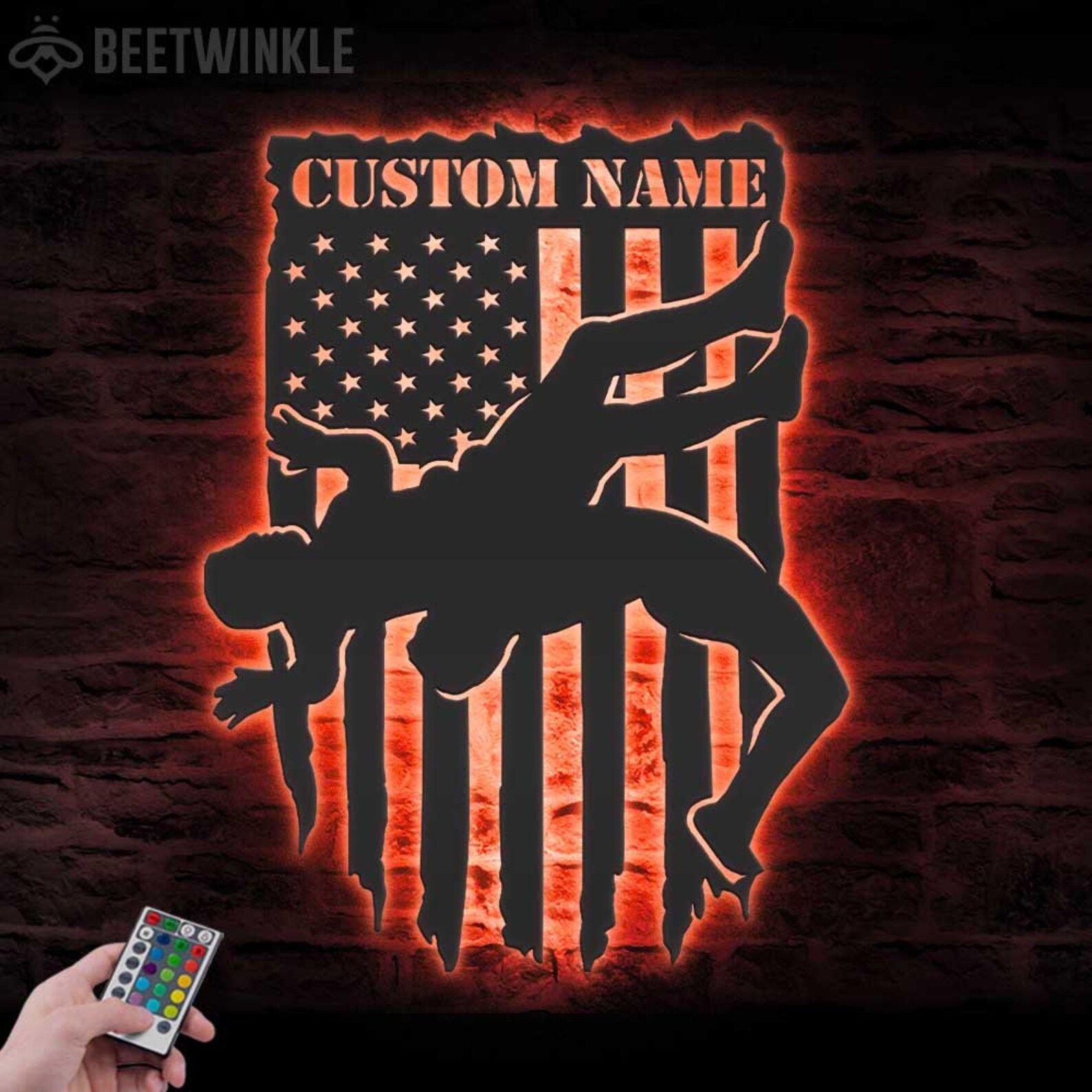 Be the first to review “Custom Wrestling US Flag Metal Art with LED Light”