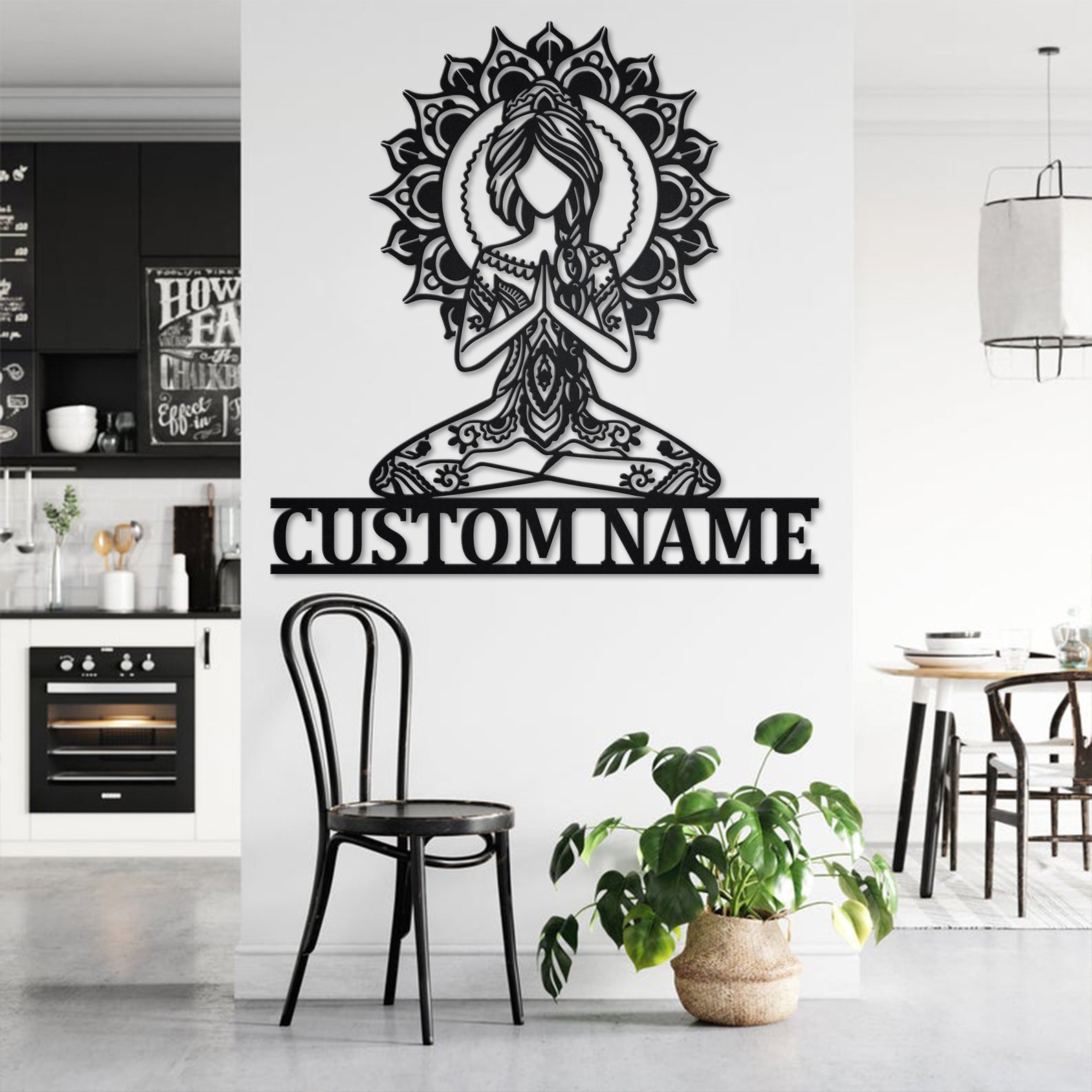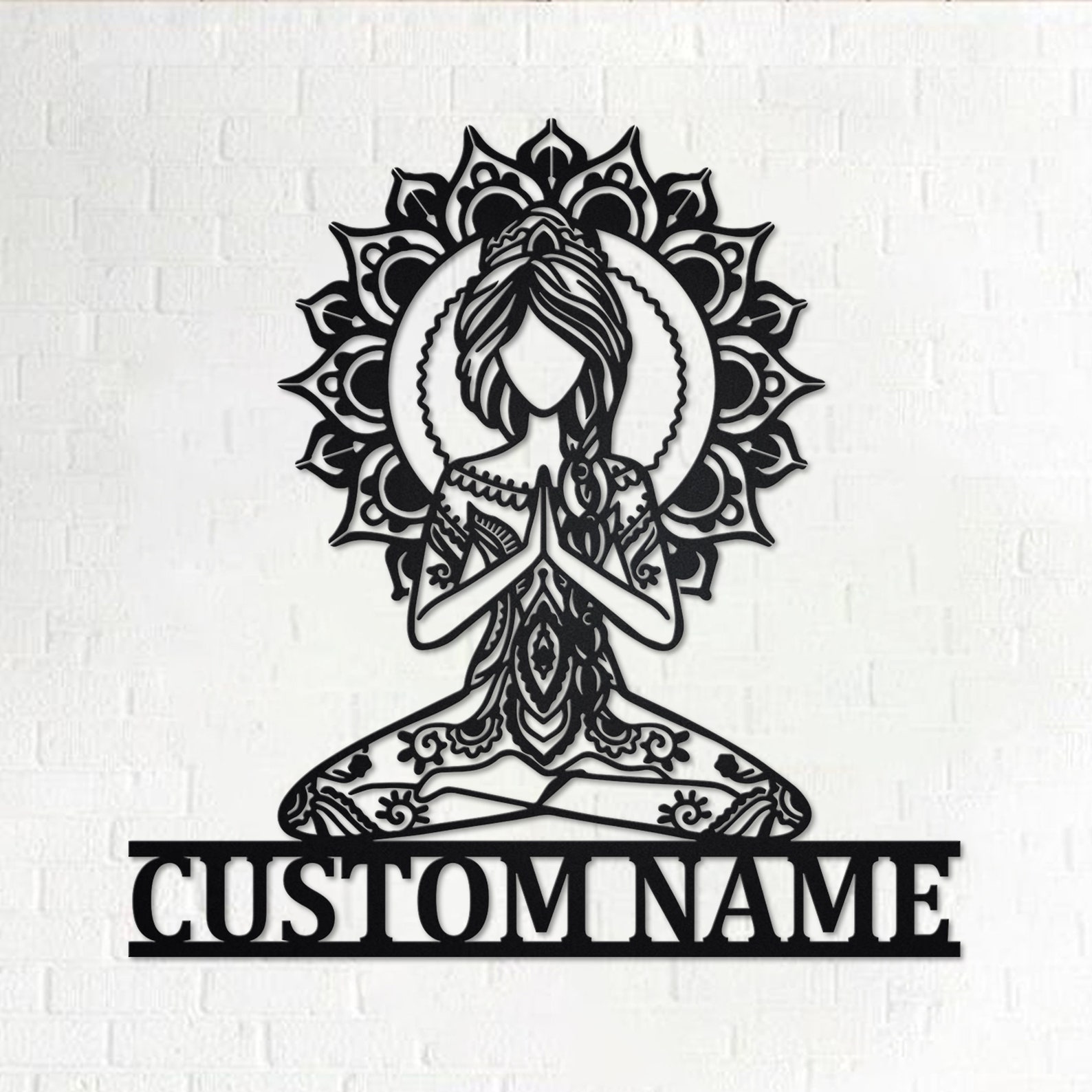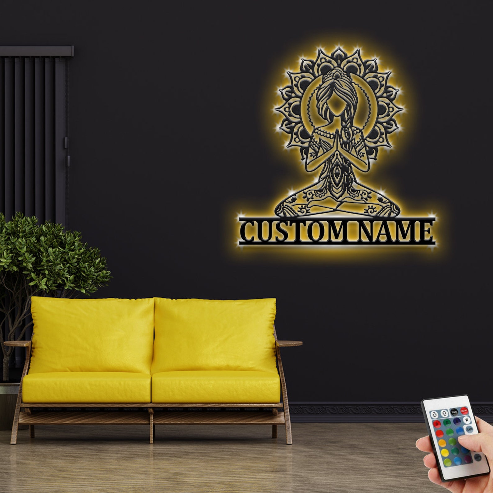 Custom Yoga Girl Mandala Metal Art with LED Light