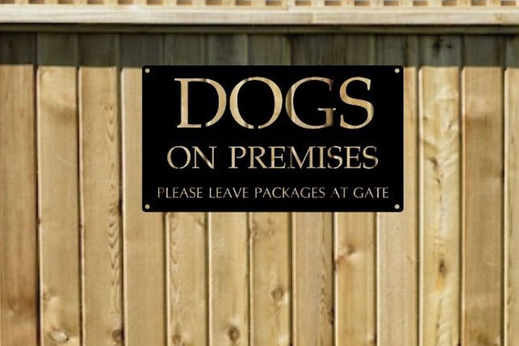 Customizable Dogs on Premises Metal Sign with Powder Coat