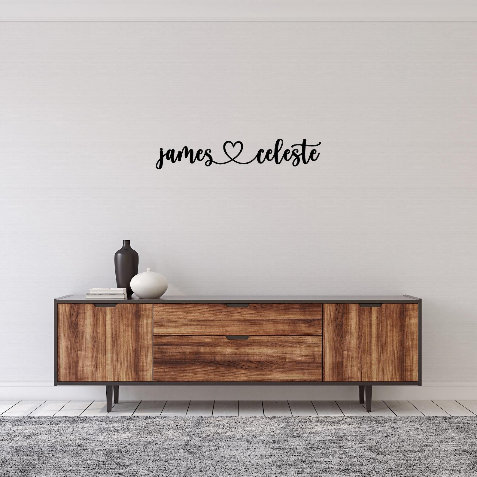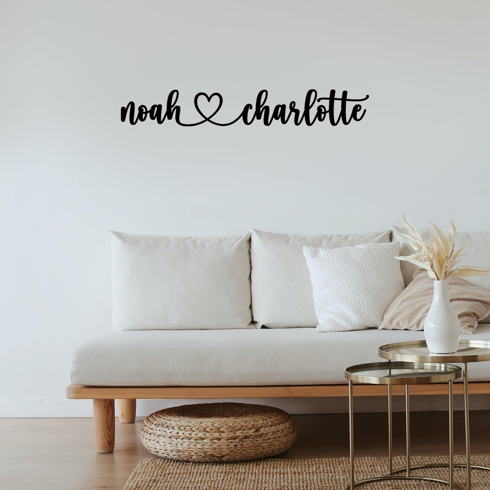 Enhance your living space with a personalized touch of artistic beauty. Our stunning metal wall art elegantly combines the names of beloved couples within the shape of a heart, symbolizing enduring love. This customized piece reflects your thoughtfulness, making it a unique and perfect gift. Created with meticulous attention to detail, this metal sign exudes enduring quality, serving as a constant reminder of your affection. With its contemporary design, it effortlessly becomes a focal point of admiration, a timeless addition to any home. Commemorate the most important connections in your life with this personalized work of art.