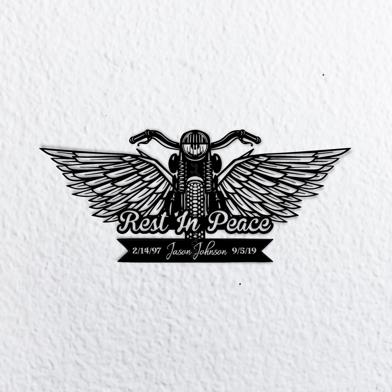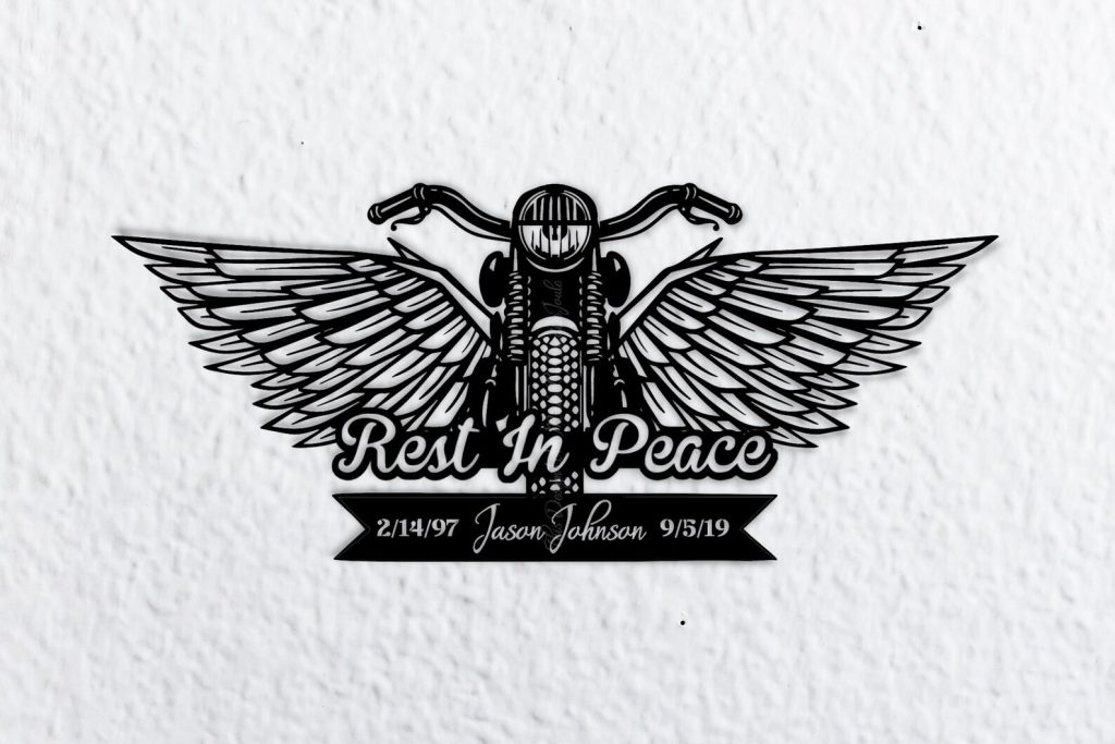 Customizable Metal Motorcycle with Angel Wings – Loving Memory Memorial Gift