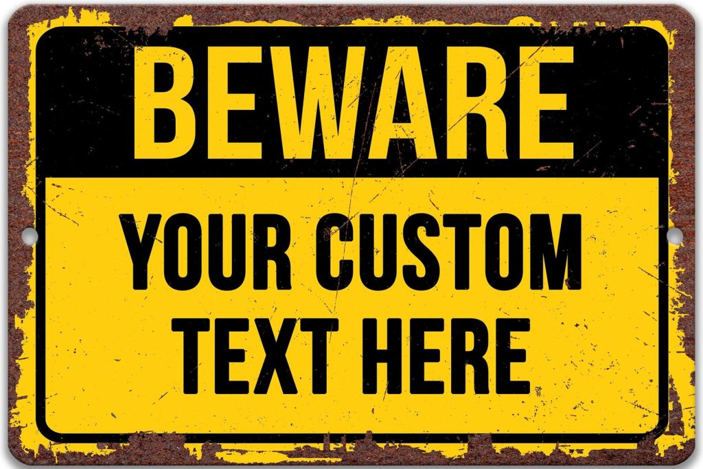 Be the first to review “Customizable Vintage Metal Beware Sign for Man Cave”