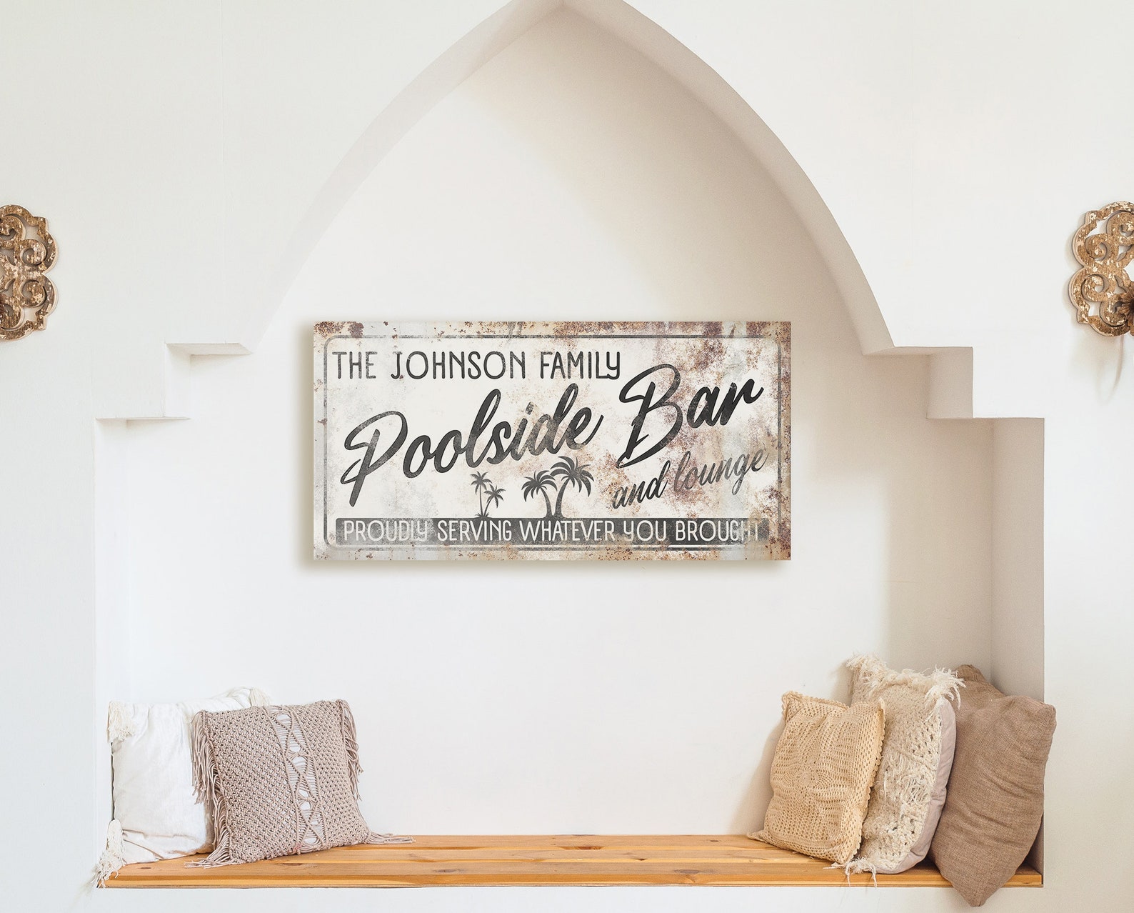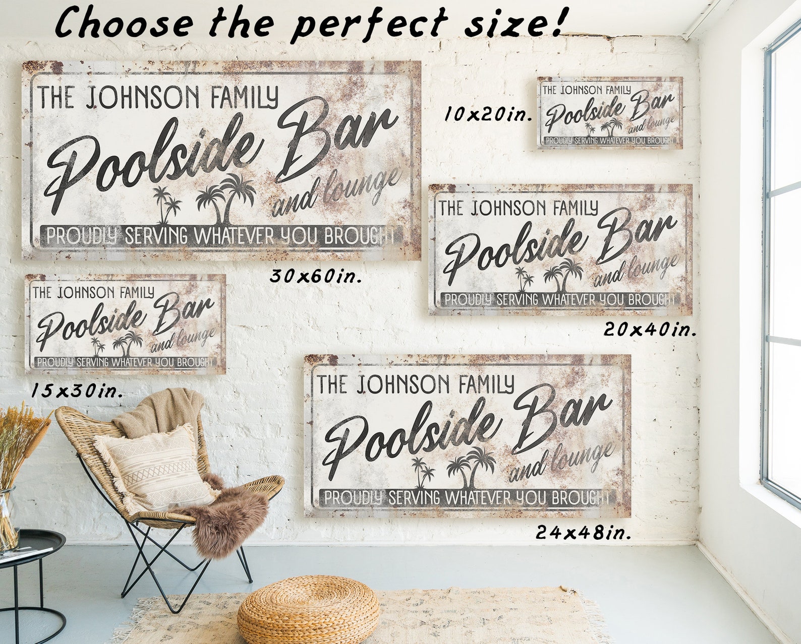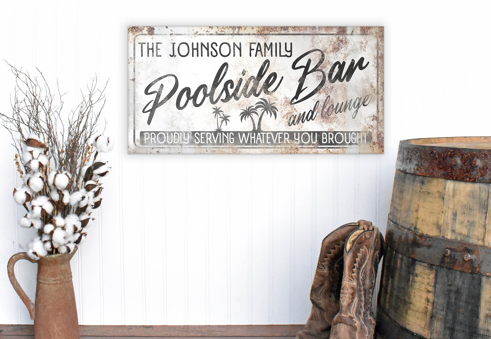 Custom Poolside Bartand Lounge SigntFamily Name WalltArt Tropical PooltSign PoolhousetDecor Canvas WoodtMetal Outdoor PatiotSign Outsidetno diving lifeguardton duty swimmingtgifts for dad momtnautical beach housetocean palm trees