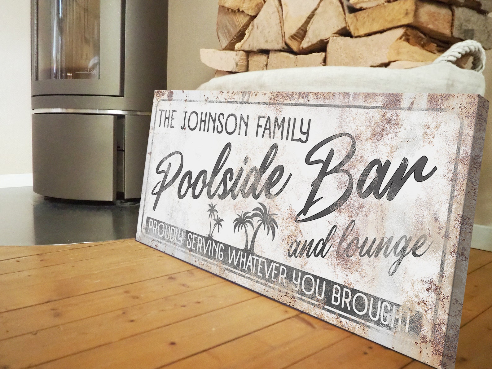 Be the first to review “Customized Pool Bar and Lounge Sign – Family Name Wall Art”