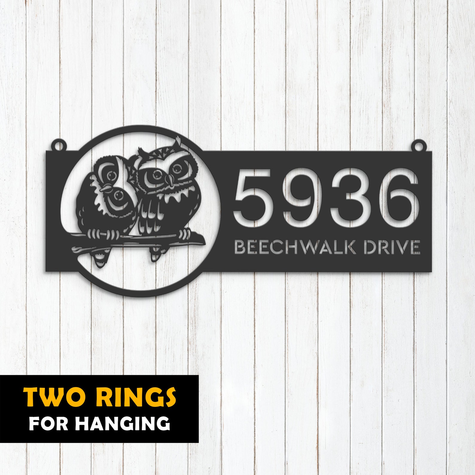 Additionally, our address sign comes in four different styles to ensure that it meets your needs. The mounting holes style is perfect for those who want to attach the sign directly to their building. Rings for hanging are great for those who want to hang the sign from a fence or wall. The attached stakes style is perfect for those who want to place the sign in their lawn, and the bolted stakes style is great for those who want to ensure that the sign is secure and sturdy.