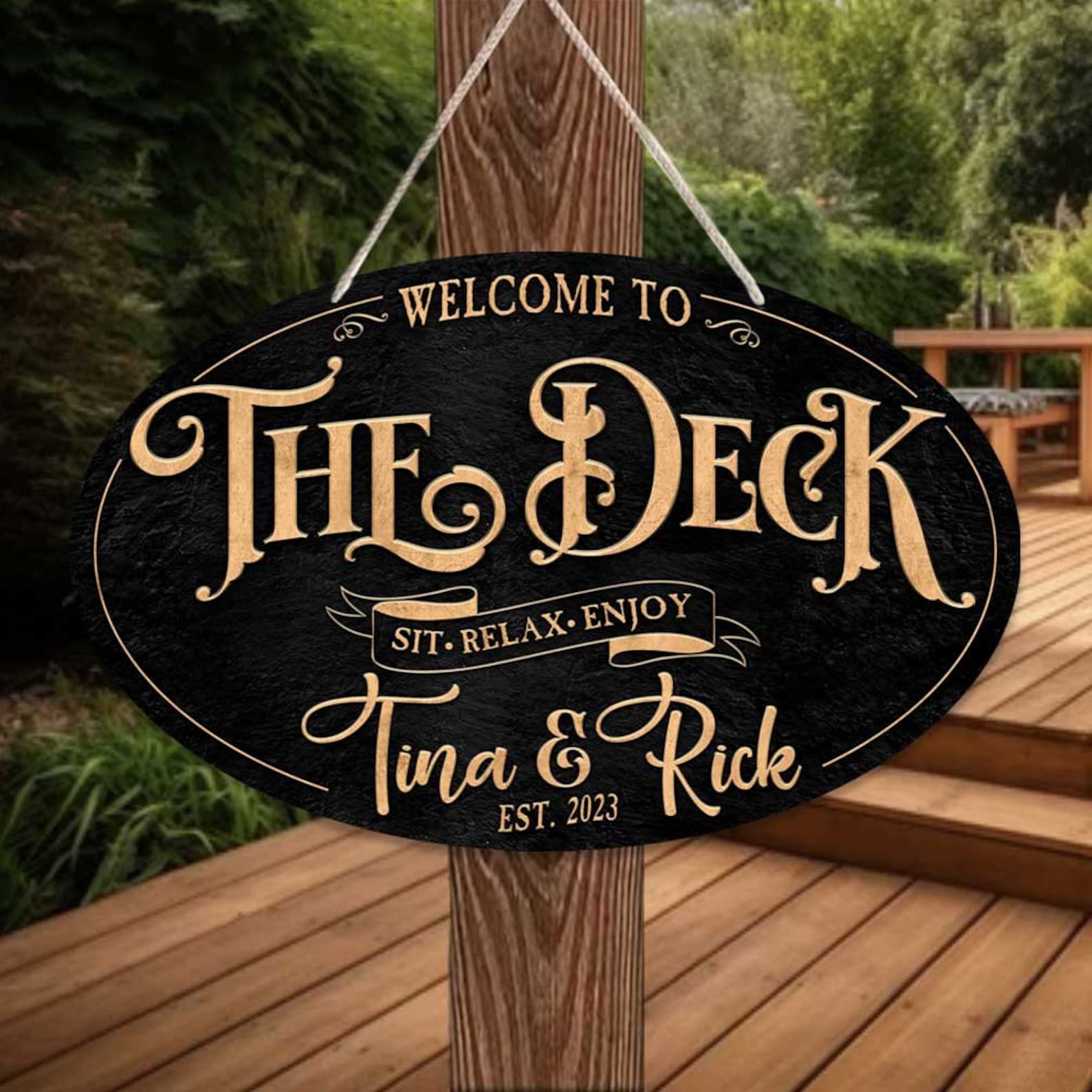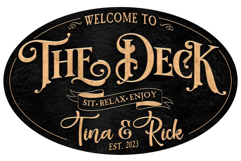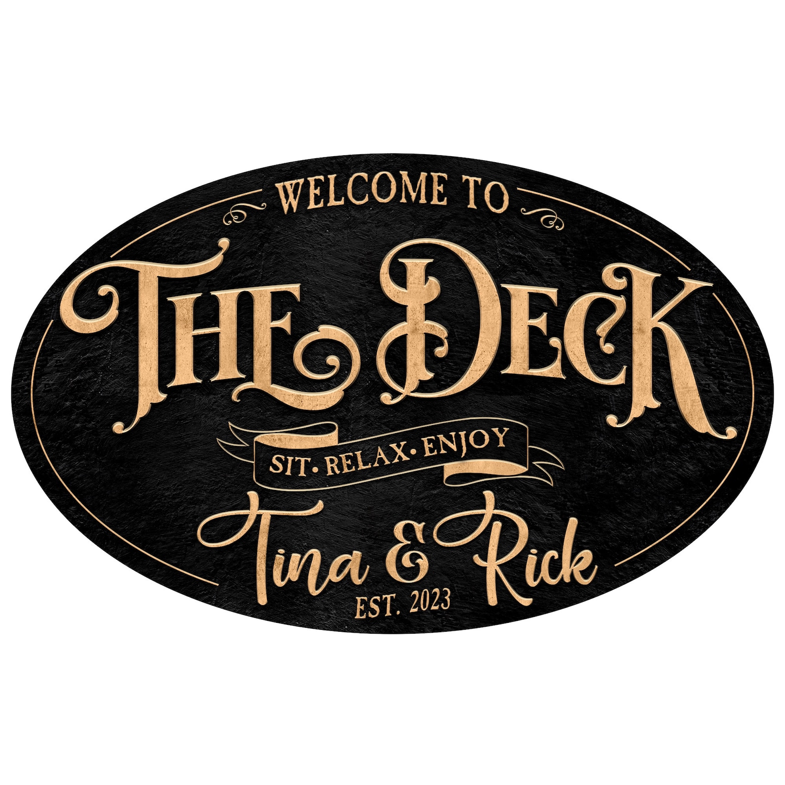 Welcome to your deck retreat, where a cozy and welcoming atmosphere is just a step away, thanks to our Oval Metal Deck Sign. We9;ve poured our heart into crafting this charming sign, ensuring every detail is perfect to turn your deck into a warm haven of hospitality. Picture this elegant oval metal deck sign enhancing your entryway a touch of grace that instantly brings a welcoming vibe.