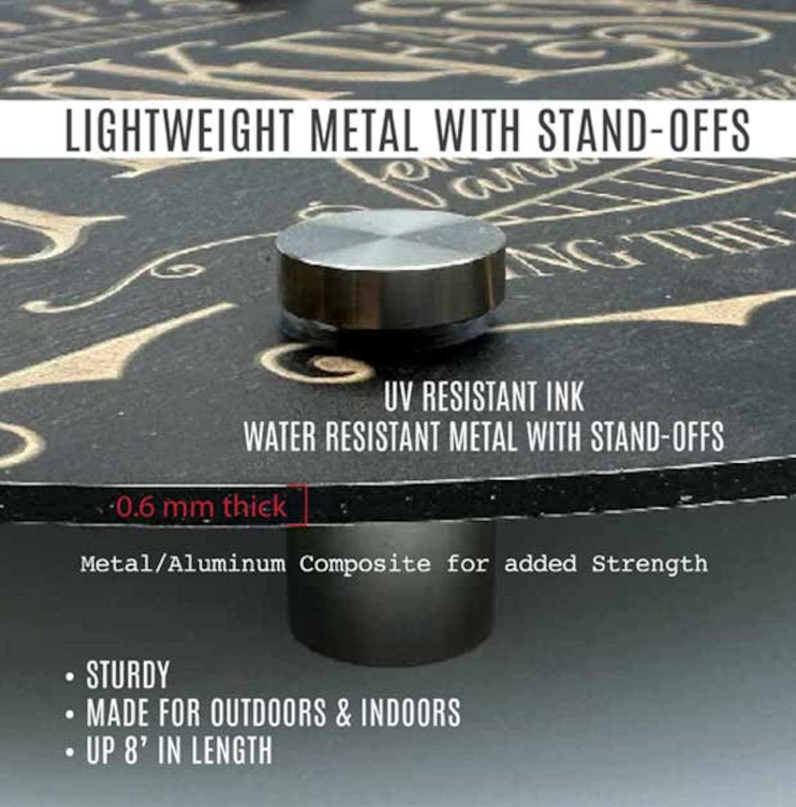 4-6 Metal Stand-offs incl for mounting, 8 for largest signs