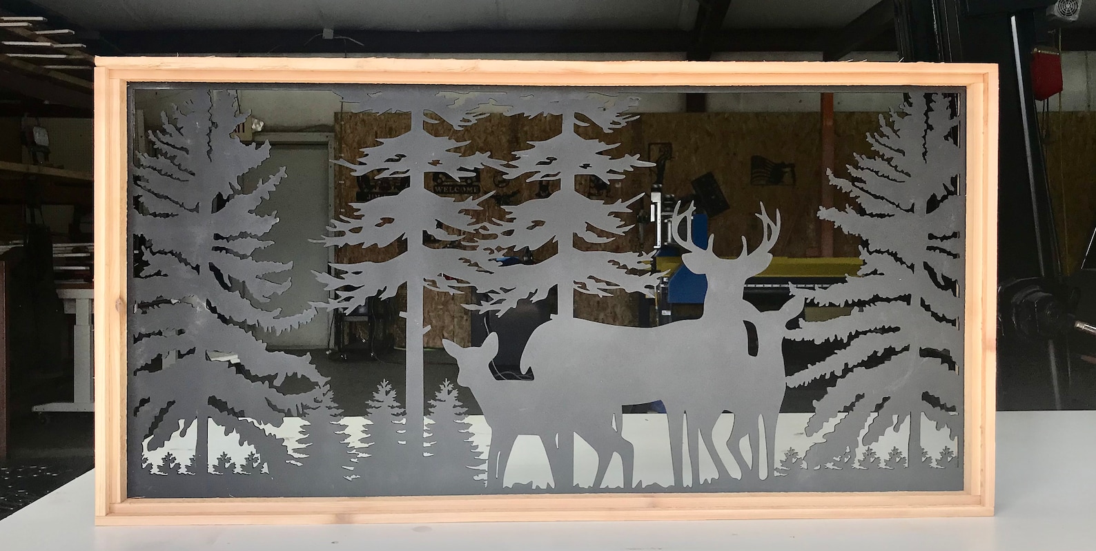 Deer and Trees Panel – Rustic Metal Wildlife Decor