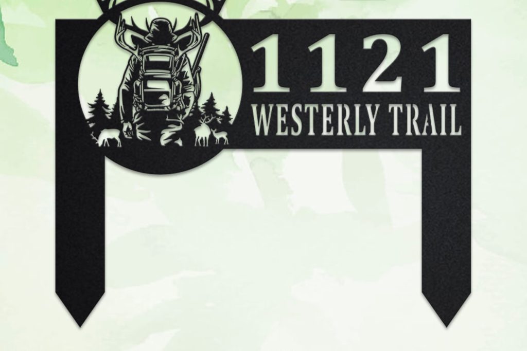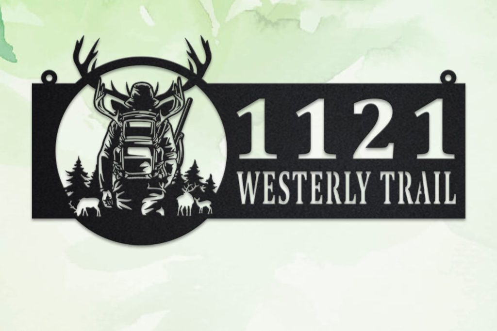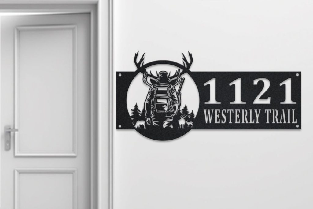Deer Hunter Address Sign – Custom Metal Plaque Decor
