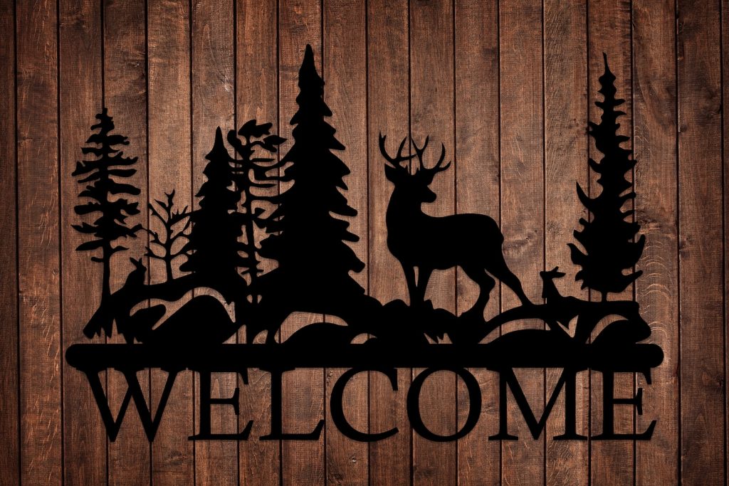 Metal Welcome Sign,Large Nature Decor, Tree with Deer Sign, Entrance door Sign,Unique Home Decor, Farmhouse Decor, Gate Wall Sign,Home Gift, Pine tree sign, Tree Sign, Metal Tree Decor, Metal Deer Sign,Housewarming Gift, Home Decor- Wall Art- Metal Wall Hangings – Custom Metal Works – Best Gift Ever – Unique Gift, Wall Hangings, Gift for Him, Personalized Sign, Gift for Her, Living Room Decor, Bedroom Decor, Metal Sign, Entrance Decor, Wild Sign,