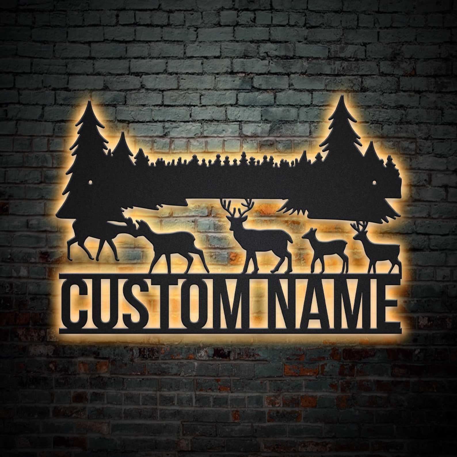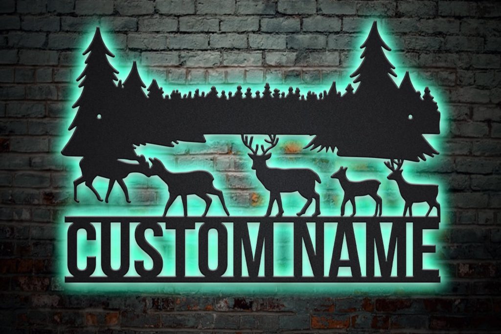 Deer Mountain Metal Sign – LED Lights, Hunting Decor