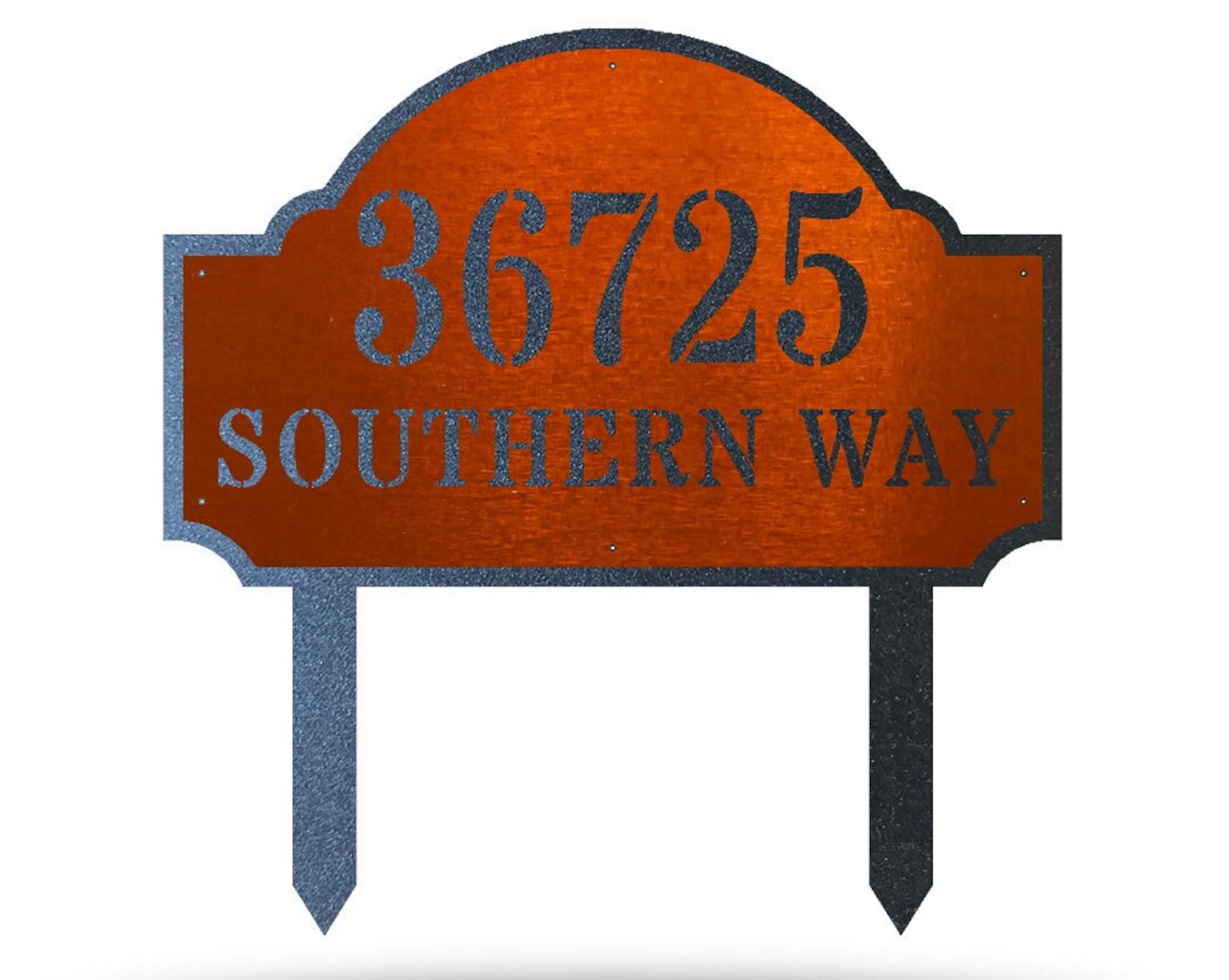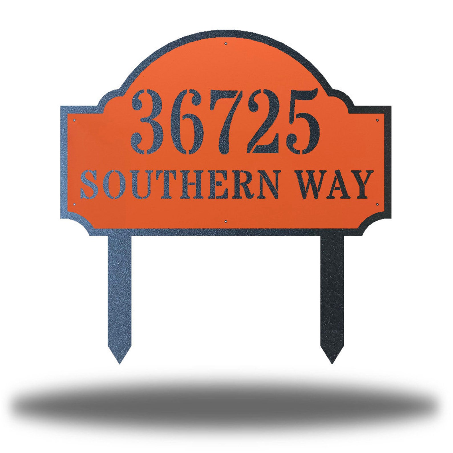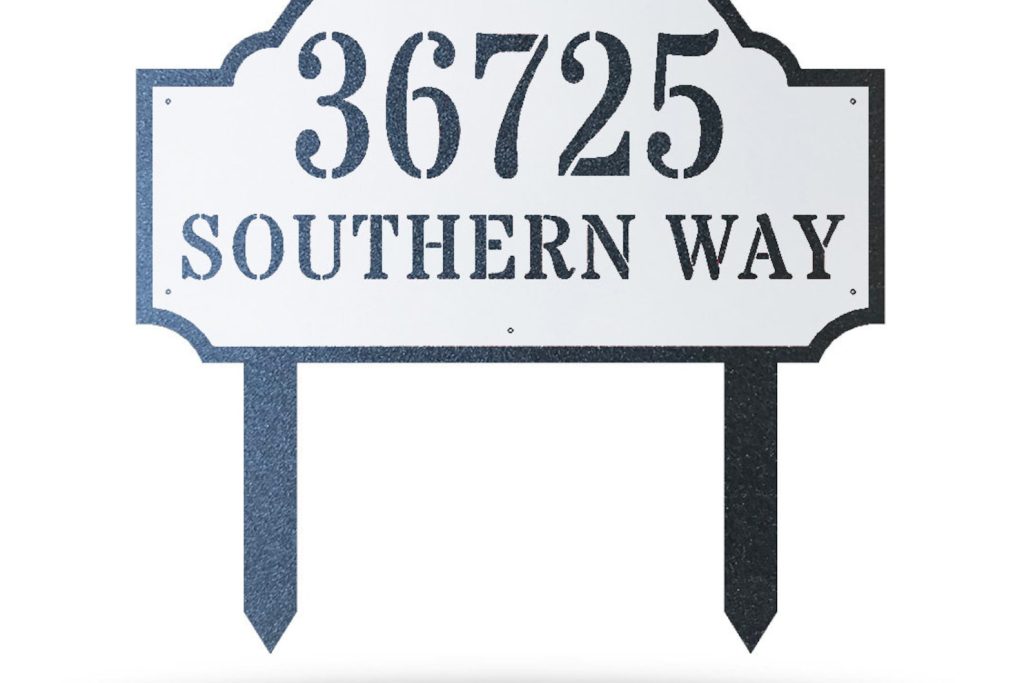 This Beautiful Customized Deluxe Address Sign is constructed of 16 gauge steel on a Fiber Laser and then Powder Coated to give this item a one of a kind, unique finish.