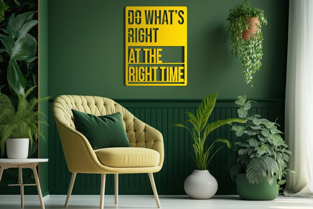 Do Whats Right At The Right Time Metal Wall Decor has different size options. It will add a playful and luxury look to your home and can be a perfect gift for your friends or family members. Modern Wall Art can be used as Bedroom Wall Decor, Living Room Decor, etc. according to your preferences. It is produced using mild steel (ST37). Designs are produced by laser cutting. It is painted with electrostatic paint. This method ensures that the product is of higher quality and durability.